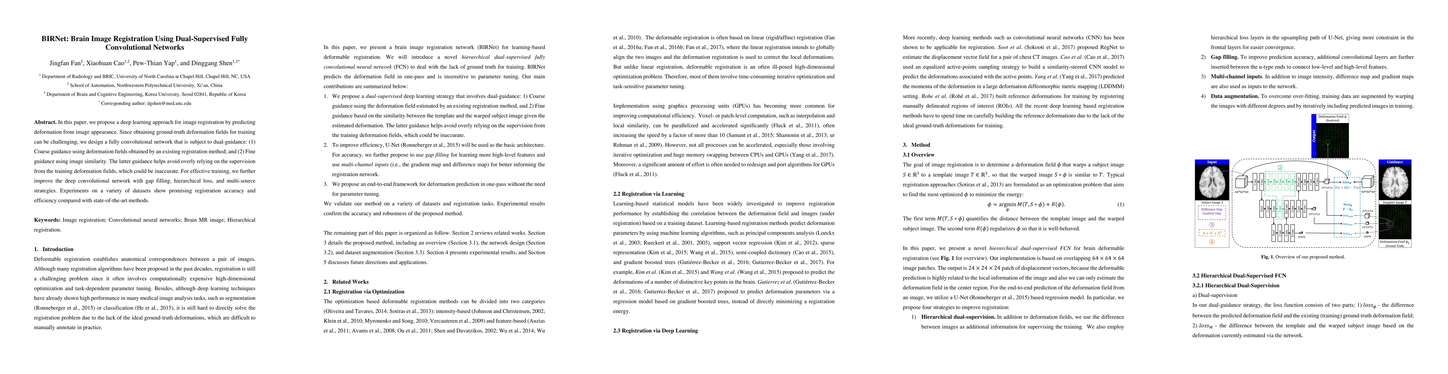 This paper introduces BIRNet, a dual-supervised fully convolutional network for brain image registration, leveraging coarse guidance from existing methods and fine guidance from image similarity to improve accuracy. The proposed network incorporates gap filling, hierarchical loss, and multi-source strategies to enhance training, demonstrating superior registration performance and efficiency.