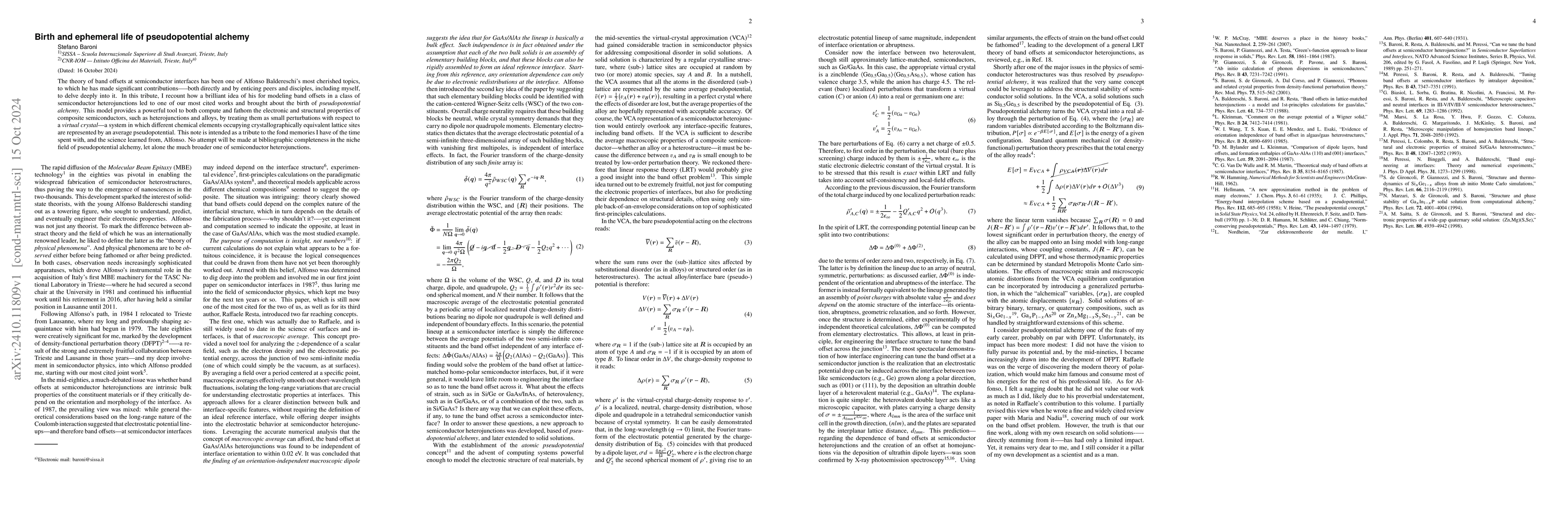 This paper pays homage to Alfonso Baldereschi's pioneering idea for modeling band offsets in semiconductor heterojunctions, leading to the development of pseudopotential alchemy, a powerful tool for understanding the electronic and structural properties of composite semiconductors. The tribute reflects on the author's experiences and the scientific insights gained from Baldereschi.