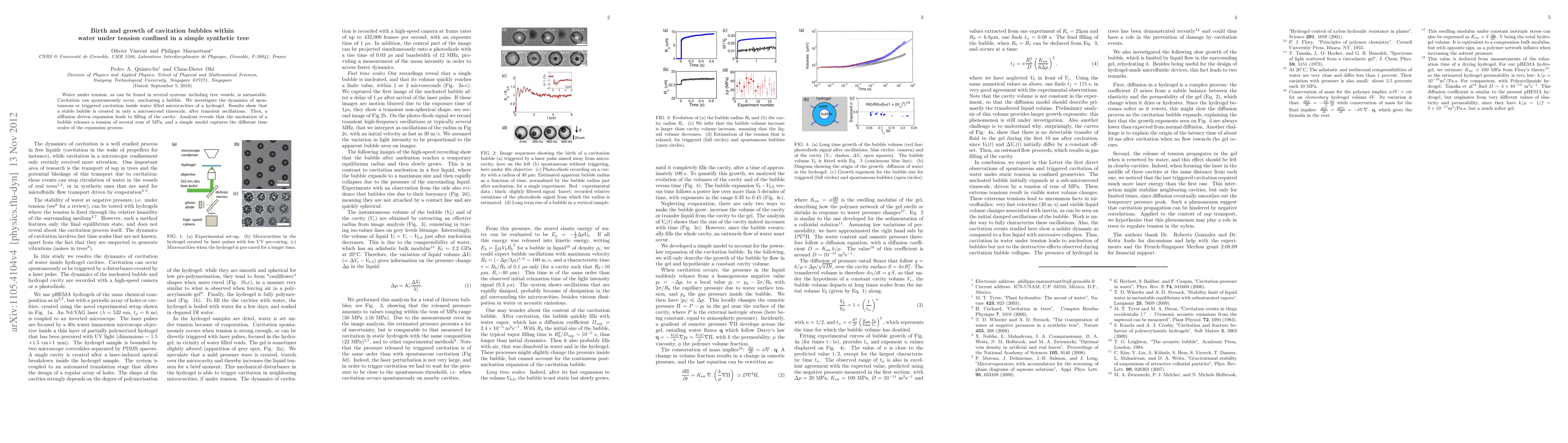This study investigates the dynamics of cavitation bubbles forming in water under tension within synthetic tree-like microcavities. The research finds that bubbles nucleate rapidly and then expand via diffusion, releasing significant tension and filling the microcavities.
