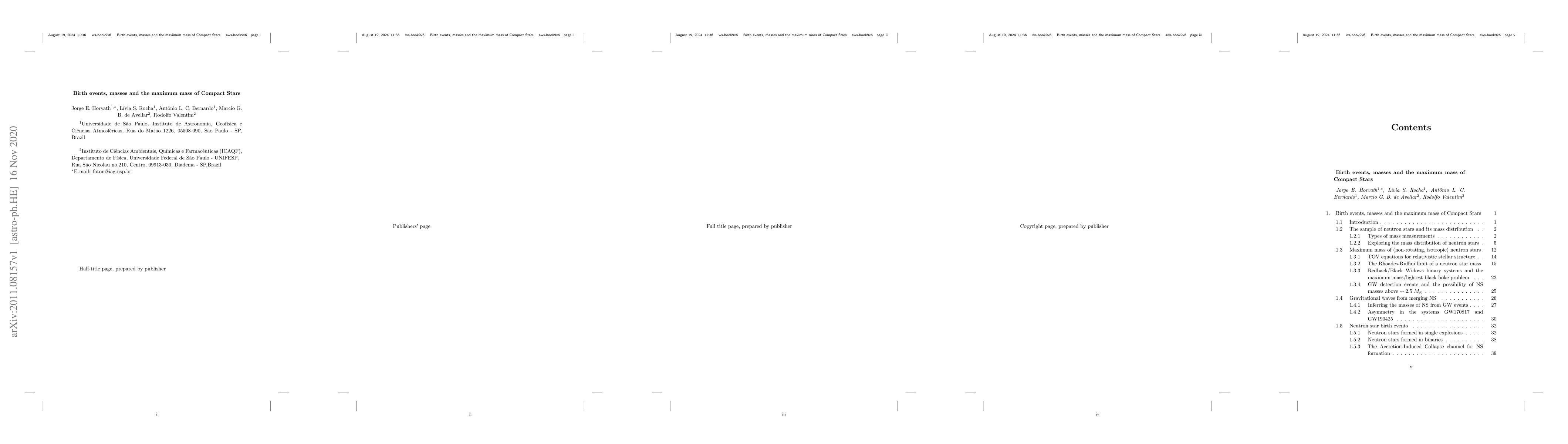 We give in this Chapter an overview of the problem of neutron star mass distribution, the issue of the maximum mass as inferred from the existing sample and the new gravitational wave events, and the connection with the formation events. It is shown that at least two different mass-scales (and possibly three) are favored by Bayesian and frequentist analysis, and the resulting maximum mass on empirical grounds only is $\sim 2.5 M_{\odot}$, making room for an interpretation of the lighter component of the GW190408 merger as a neutron star (as suggested by the GW event population analysis). We discuss in some length the challenges for a theoretical construction of a stiff equation of state and the status of available supernova explosions (single and binary simulations) and AIC expected to provide the masses at birth.