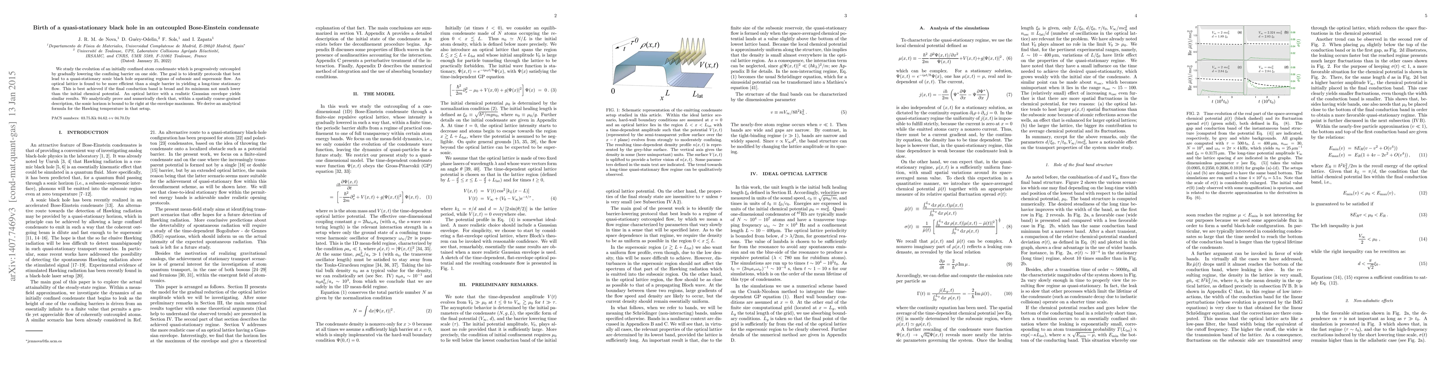 We study the evolution of an initially confined atom condensate which is progressively outcoupled by gradually lowering the confining barrier on one side. The goal is to identify protocols that best lead to a quasi-stationary sonic black hole separating regions of subsonic and supersonic flow. An optical lattice is found to be more efficient than a single barrier in yielding a long-time stationary flow. This is best achieved if the final conduction band is broad and its minimum not much lower than the initial chemical potential. An optical lattice with a realistic Gaussian envelope yields similar results. We analytically prove and numerically check that, within a spatially coarse-grained description, the sonic horizon is bound to lie right at the envelope maximum. We derive an analytical formula for the Hawking temperature in that setup.