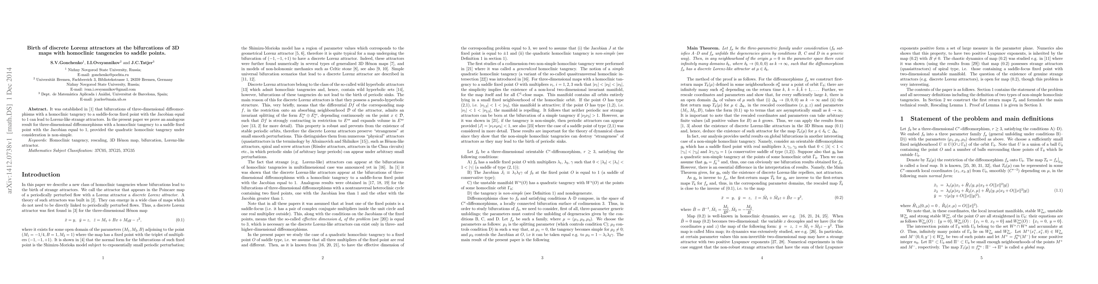 This paper demonstrates that bifurcations in three-dimensional maps with a homoclinic tangency to a saddle fixed point, having a Jacobian of 1, can lead to the emergence of discrete Lorenz attractors when the tangency is quadratic and non-simple. It extends previous findings from saddle-focus interactions to saddle interactions.