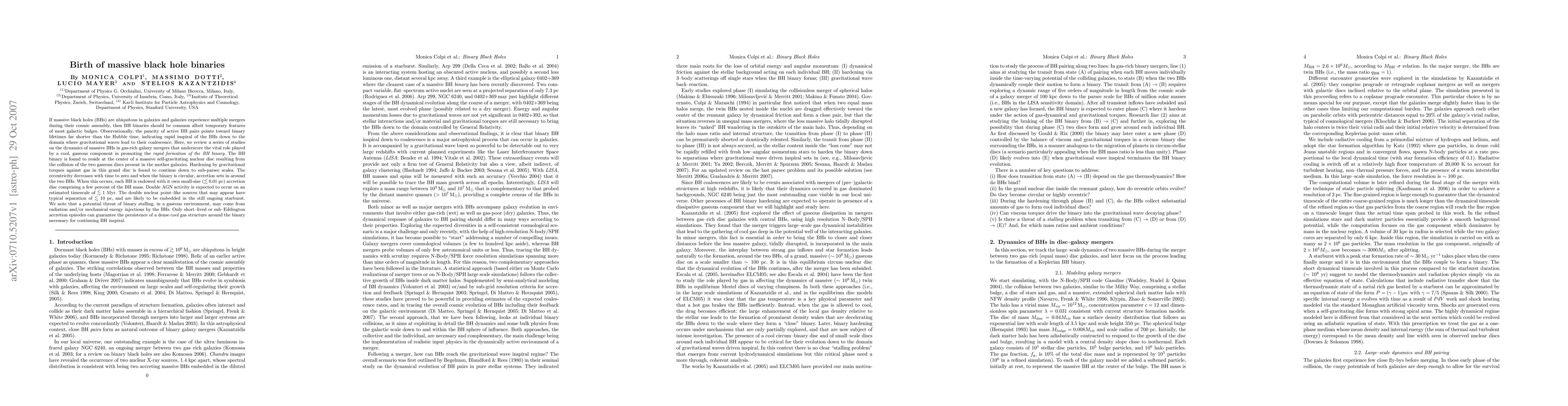 If massive black holes (BHs) are ubiquitous in galaxies and galaxies experience multiple mergers during their cosmic assembly, then BH binaries should be common albeit temporary features of most galactic bulges. Observationally, the paucity of active BH pairs points toward binary lifetimes far shorter than the Hubble time, indicating rapid inspiral of the BHs down to the domain where gravitational waves lead to their coalescence. Here, we review a series of studies on the dynamics of massive BHs in gas-rich galaxy mergers that underscore the vital role played by a cool, gaseous component in promoting the rapid formation of the BH binary. The BH binary is found to reside at the center of a massive self-gravitating nuclear disc resulting from the collision of the two gaseous discs present in the mother galaxies. Hardening by gravitational torques against gas in this grand disc is found to continue down to sub-parsec scales. The eccentricity decreases with time to zero and when the binary is circular, accretion sets in around the two BHs. When this occurs, each BH is endowed with it own small-size (< 0.01 pc) accretion disc comprising a few percent of the BH mass. Double AGN activity is expected to occur on an estimated timescale of < 1 Myr. The double nuclear point-like sources that may appear have typical separation of < 10 pc, and are likely to be embedded in the still ongoing starburst. We note that a potential threat of binary stalling, in a gaseous environment, may come from radiation and/or mechanical energy injections by the BHs. Only short-lived or sub-Eddington accretion episodes can guarantee the persistence of a dense cool gas structure around the binary necessary for continuing BH inspiral.