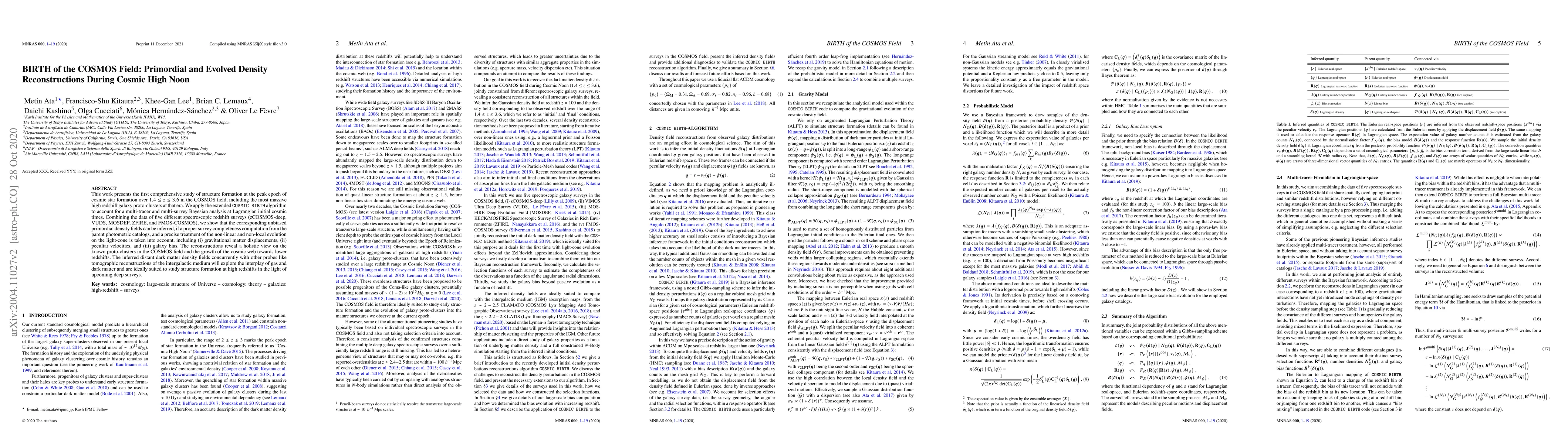 This paper reconstructs the primordial and evolved density fields in the COSMOS field during the peak epoch of cosmic star formation, using the extended COSMIC BIRTH algorithm and data from five spectroscopic surveys. The study reveals insights into the growth of proto-clusters and the cosmic web, highlighting the interplay between dark matter and gas at high redshifts.