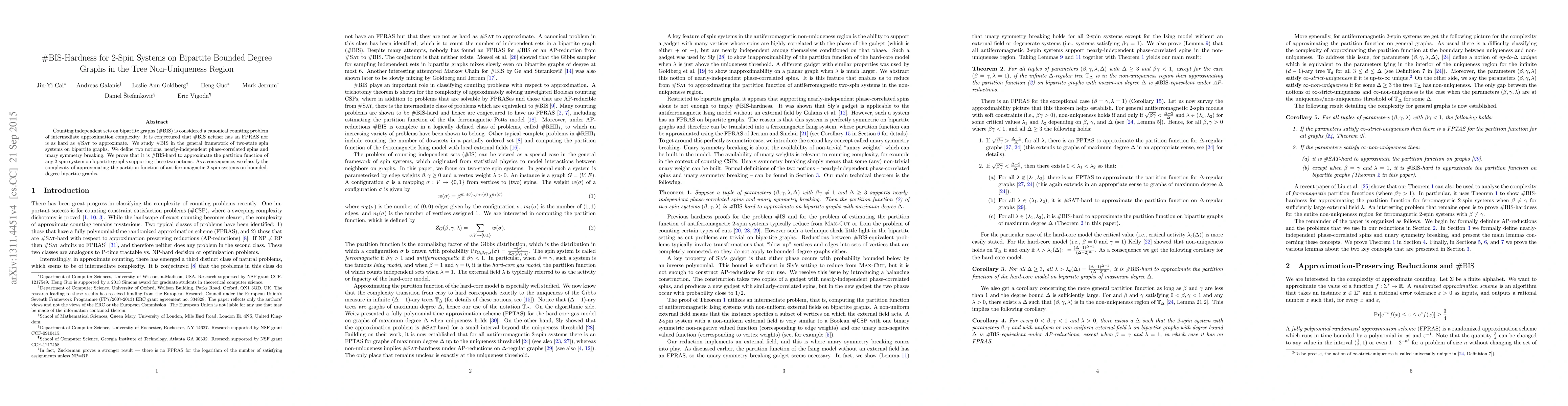 This paper investigates the complexity of approximating the partition function for 2-spin systems on bipartite graphs, proving #BIS-hardness under certain conditions. The study introduces nearly-independent phase-correlated spins and unary symmetry breaking, leading to a classification of the complexity for antiferromagnetic 2-spin systems on bounded-degree bipartite graphs.