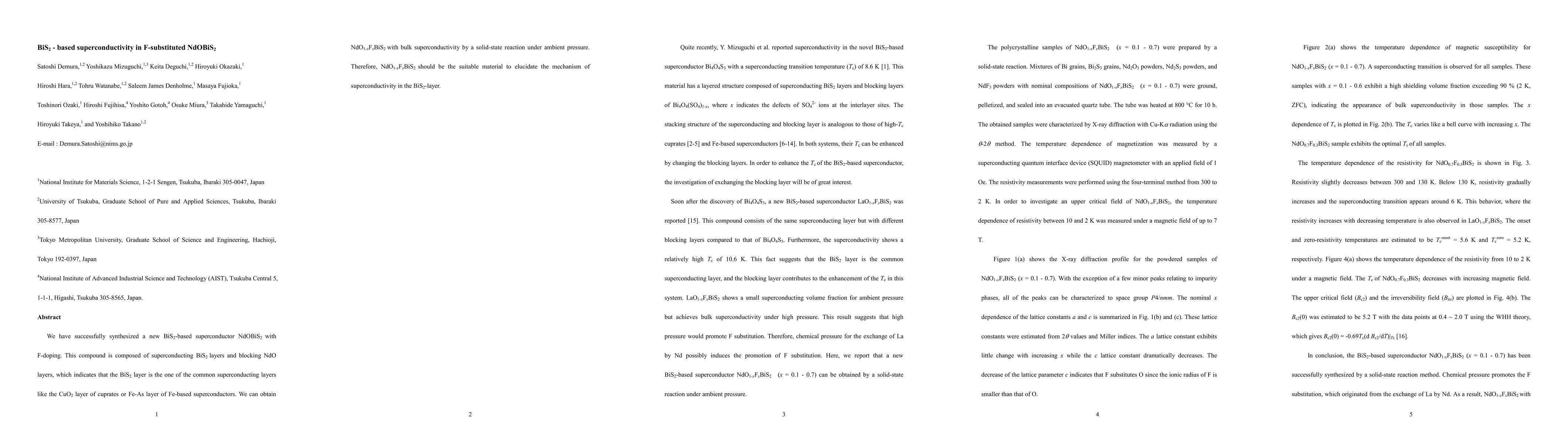 Title: BiS2-based superconductivity in F-substituted NdOBiS2 Summary: Researchers synthesized NdOBiS2 with F-doping, revealing bulk superconductivity and suggesting the BiS2 layer as a common superconducting layer akin to CuO2 or Fe-As layers. This makes NdO1-xFxBiS2 a promising material for studying superconductivity mechanisms in BiS2 layers.