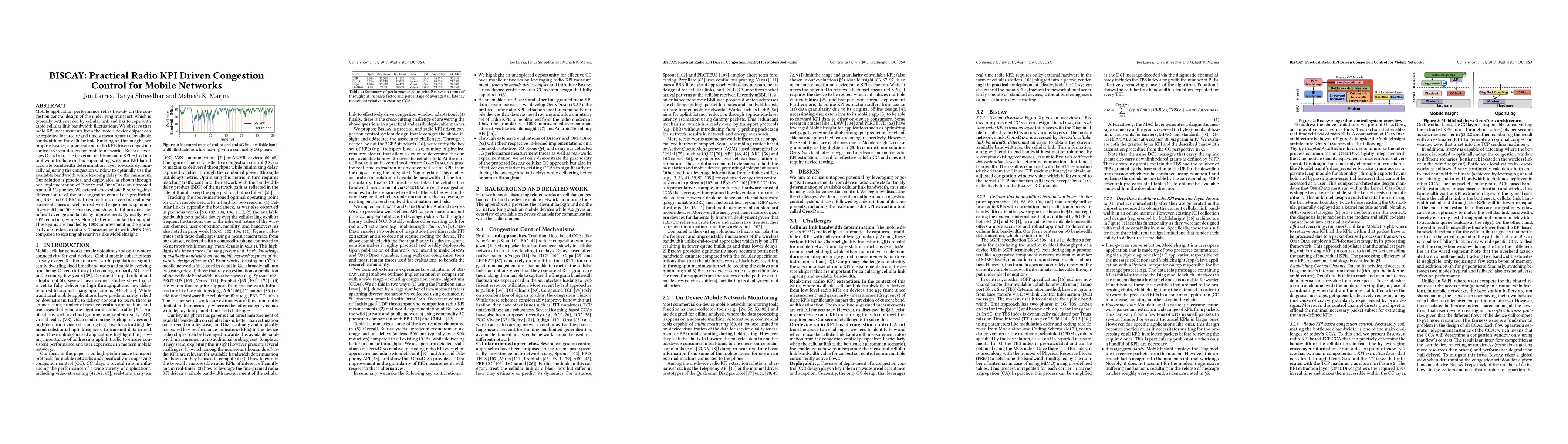 Mobile application performance relies heavily on the congestion control design of the underlying transport, which is typically bottlenecked by cellular link and has to cope with rapid cellular link bandwidth fluctuations. We observe that radio KPI measurements from the mobile device chipset can be exploited for precise and timely measurement of available bandwidth on the cellular link. Building on this insight, we propose Biscay, a practical and radio KPI-driven congestion control system design for mobile networks. Biscay leverages OpenDiag, the in-kernel real-time radio KPI extraction tool we introduce in this paper, along with our KPI-based accurate bandwidth determination layer towards dynamically adjusting the congestion window to optimally use the available bandwidth while keeping delay to the minimum. Our solution is practical and deployable, as shown through our implementation of Biscay and OpenDiag on unrooted Android 5G phones. We extensively evaluate Biscay against different state-of-the-art congestion control designs including BBR and CUBIC with emulations driven by real measurement traces as well as real-world experiments spanning diverse 4G and 5G scenarios, and show that it provides significant average and tail delay improvements (typically over 90% reduction) while yielding better or similar throughput. These gains are enabled by 100% improvement in the granularity of on-device radio KPI measurements with OpenDiag compared to existing alternatives like MobileInsight.