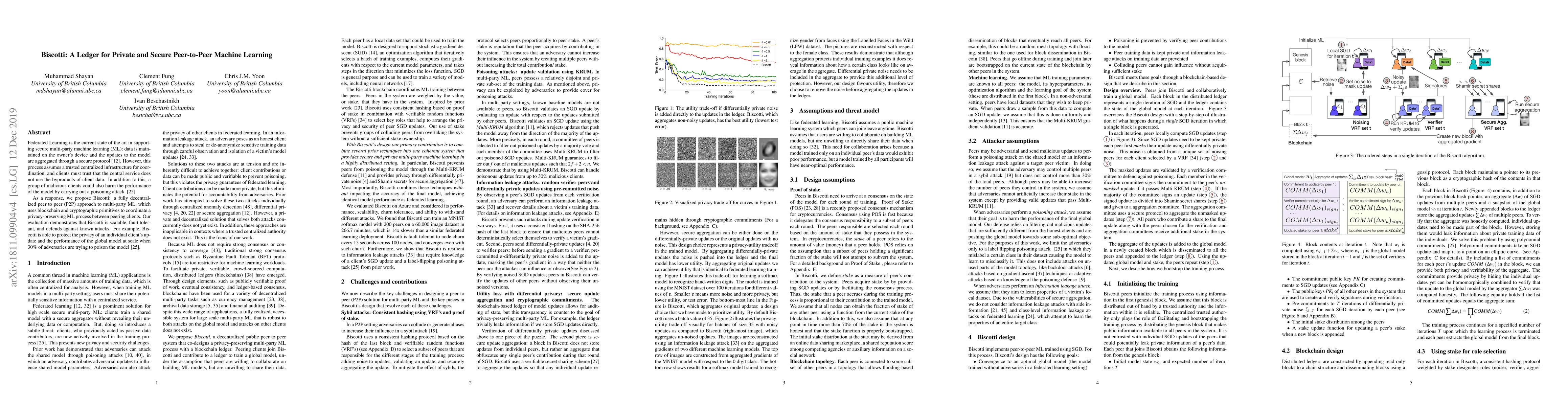 Researchers propose Biscotti, a decentralized peer-to-peer machine learning approach using blockchain, to protect data privacy and prevent poisoning attacks in federated learning.