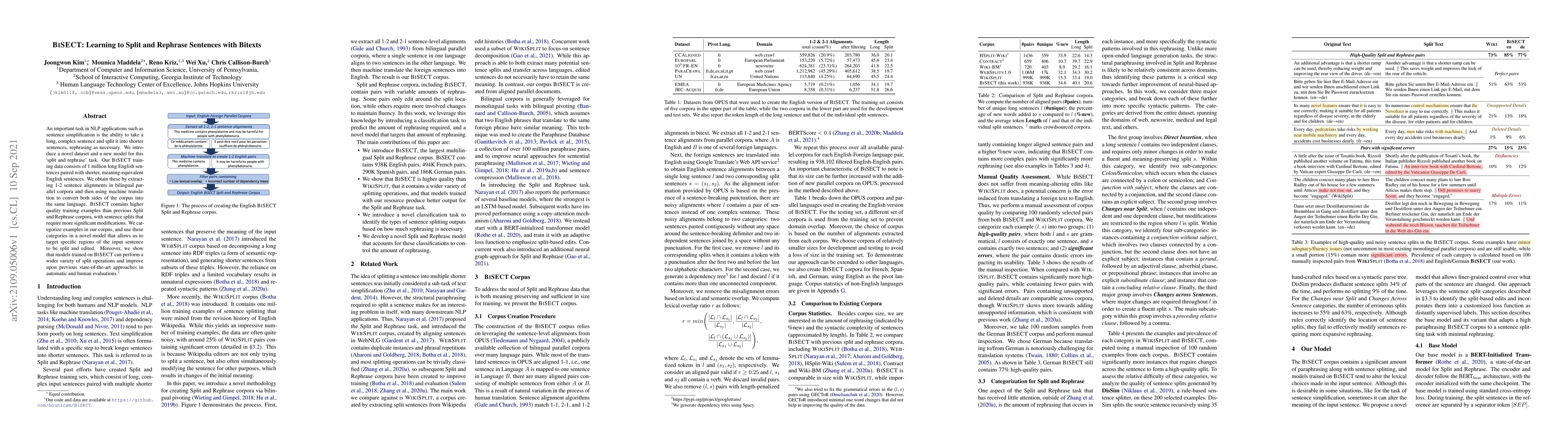 Researchers introduce a new model called BiSECT that can split and rephrase long sentences into shorter ones with higher accuracy than previous approaches. The model achieves this by using a novel dataset of paired sentences and targeting specific regions of the input sentence to be split and edited.