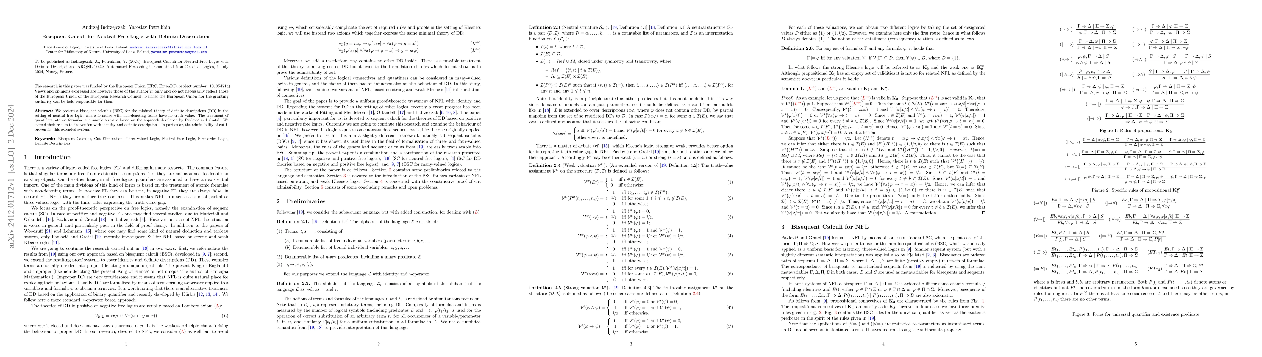 This paper introduces a bisequent calculus for neutral free logic incorporating the minimal theory of definite descriptions, extending Pavlović and Gratzl’s approach, and proving the admissibility of cut for this extended system where non-denoting terms lack truth value.