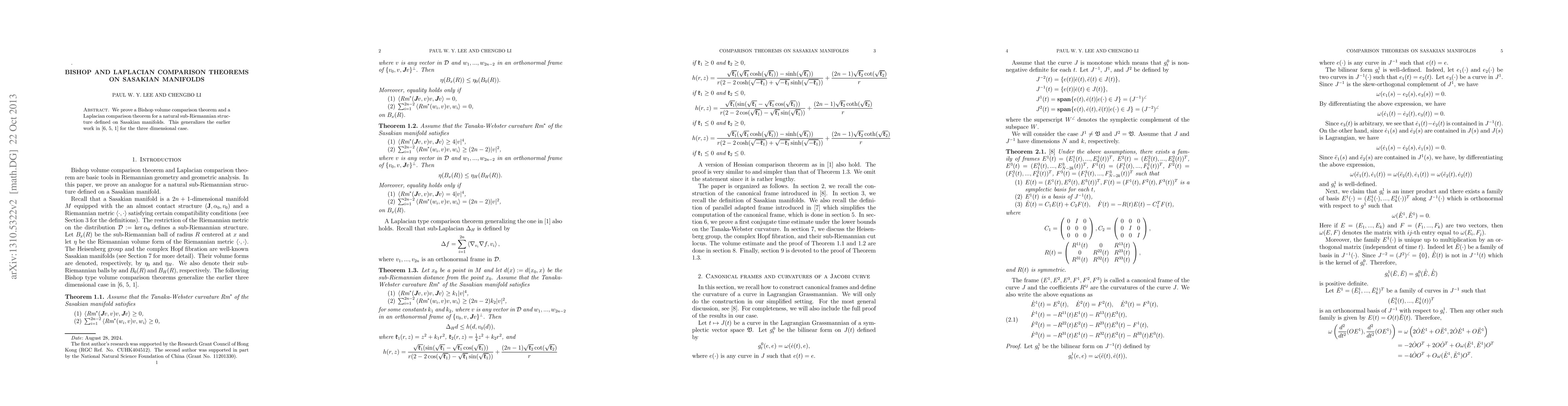 Summary: This paper proves a Bishop volume comparison theorem and a Laplacian comparison theorem for Sasakian manifolds, extending previous results from three dimensions to the general case. The study focuses on the natural sub-Riemannian structure inherent in Sasakian manifolds.
