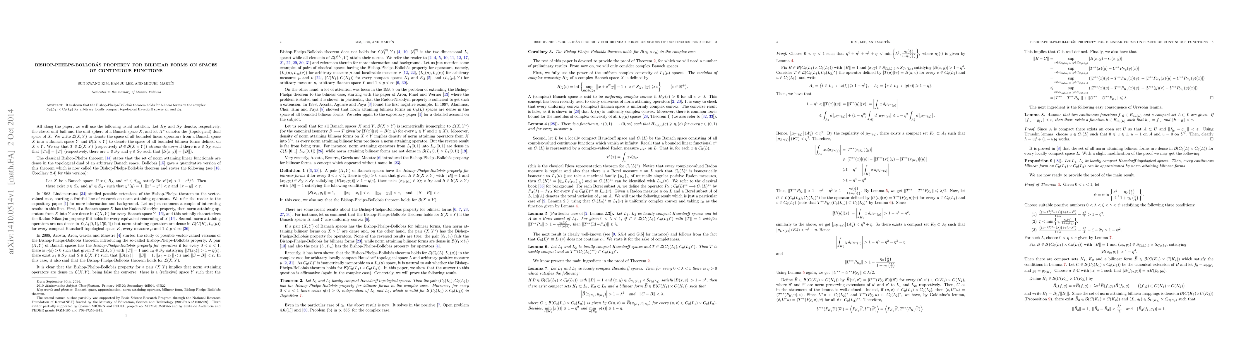 Summary: The paper demonstrates the validity of the Bishop-Phelps-Bollobás theorem for bilinear forms on the product space of continuous functions $C_0(L_1)\times C_0(L_2)$ over arbitrary locally compact Hausdorff spaces $L_1$ and $L_2$. This extends the theorem's applicability to a broader class of function spaces.