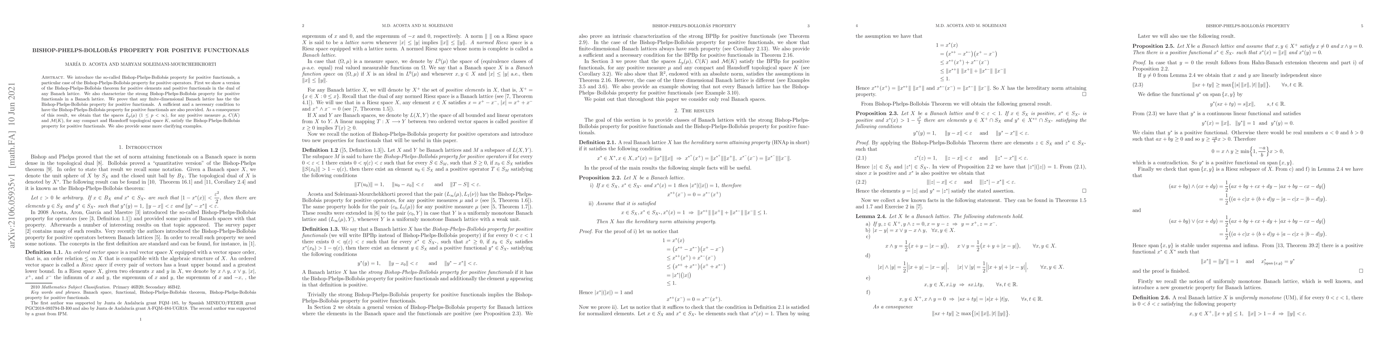This paper introduces the Bishop-Phelps-Bollobás property for positive functionals in Banach lattices, proving its existence in finite-dimensional spaces and characterizing it in general. It also shows that $L_p(\mu)$, $C(K)$, and $\mathcal{M}(K)$ satisfy this property for positive functionals.