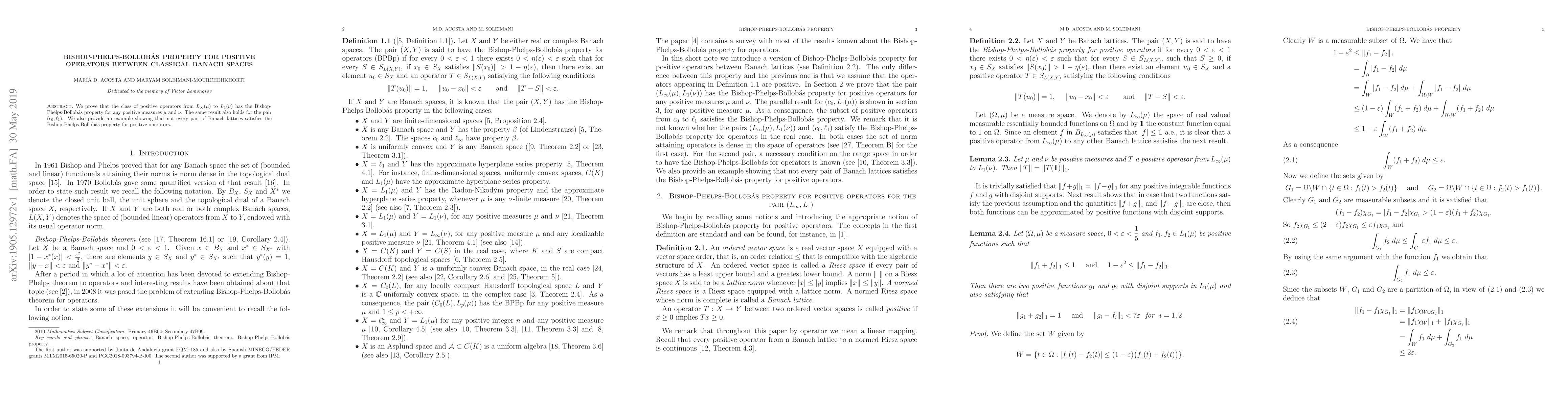 This paper proves that positive operators from $L_\infty (\mu)$ to $L_1 (\nu)$ and from $c_0$ to $\ell_1$ possess the Bishop-Phelps-Bollobás property. It also demonstrates that not all pairs of Banach lattices exhibit this property for positive operators.