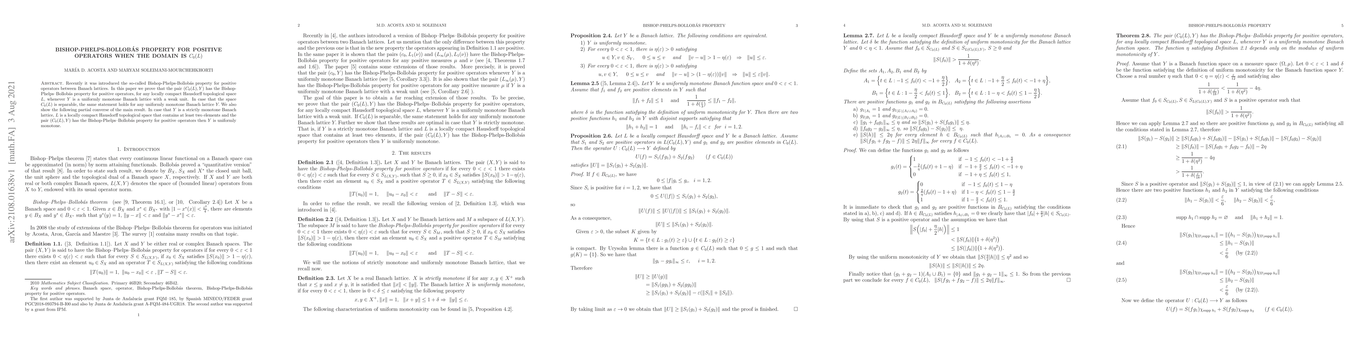 Recently it was introduced the so-called Bishop-Phelps-Bollob{\'a}s property for positive operators between Banach lattices. In this paper we prove that the pair $(C_0(L), Y) $ has the Bishop-Phelps--Bollob{\'a}s property for positive operators, for any locally compact Hausdorff topological space $L$, whenever $Y$ is a uniformly monotone Banach lattice with a weak unit. In case that the space $C_0(L)$ is separable, the same statement holds for any uniformly monotone Banach lattice $Y .$ We also show the following partial converse of the main result. In case that $Y$ is a strictly monotone Banach lattice, $L$ is a locally compact Hausdorff topological space that contains at least two elements and the pair $(C_0(L), Y )$ has the Bishop-Phelps--Bollob{\'a}s property for positive operators then $Y$ is uniformly monotone.