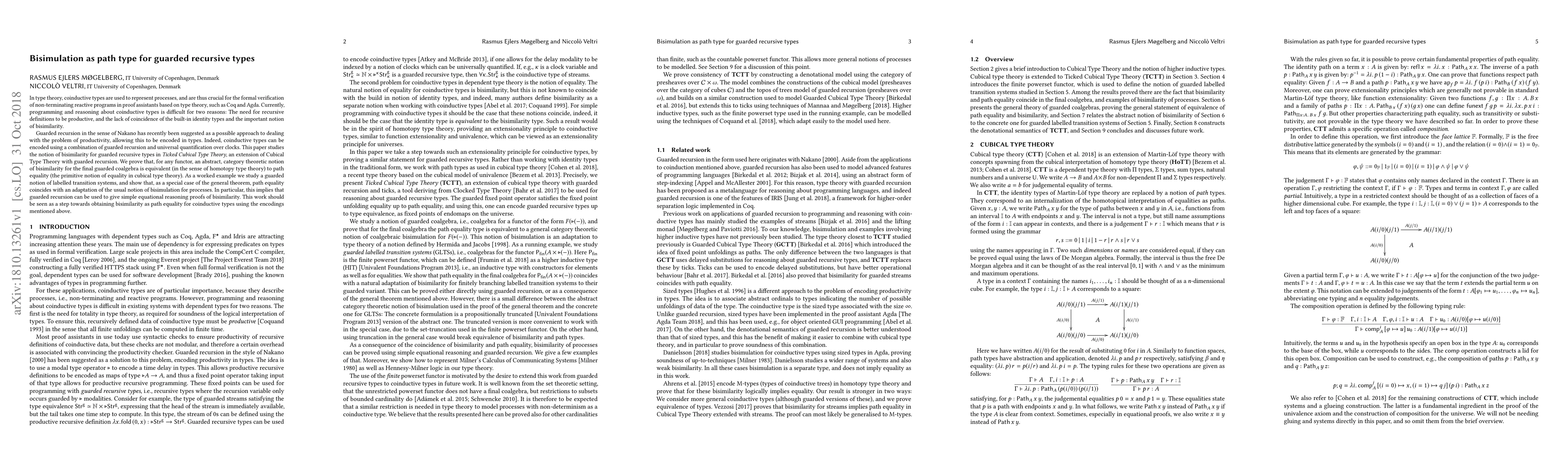The paper introduces a method to represent guarded recursive types and proves their equivalence to path equality for bisimilarity, providing a bridge between category theory and type theory.