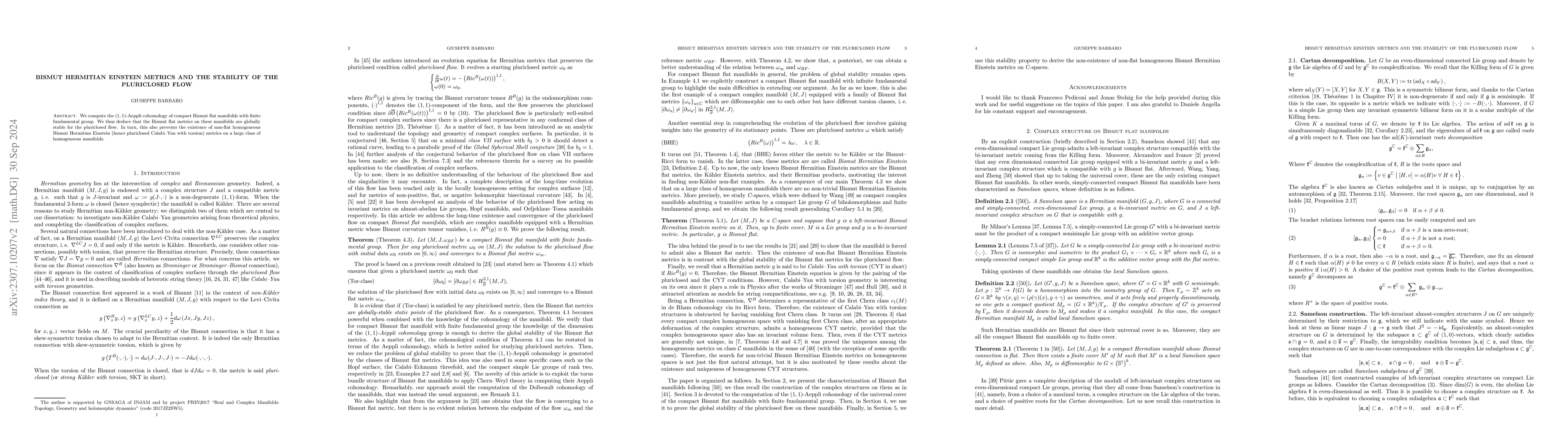 Summary: This paper computes the (1,1)-Aeppli cohomology of compact simply-connected Lie groups and concludes that Bismut flat metrics on compact Bismut flat manifolds with finite fundamental group are globally stable under the pluriclosed flow, thereby precluding the existence of non-flat homogeneous Bismut Hermitian Einstein metrics on C-spaces.
