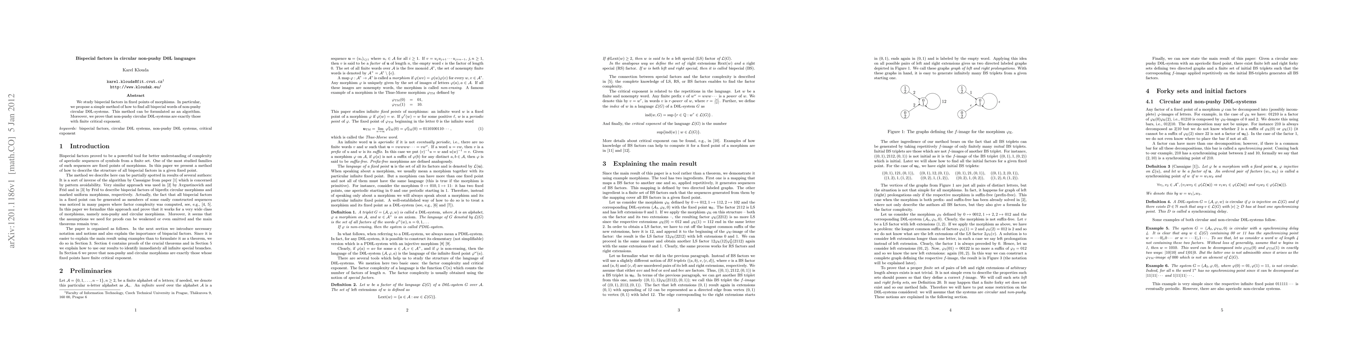 Researchers found a way to identify bispecial words in circular non-pushy D0L-systems using a simple algorithm, proving that these systems have finite critical exponents if they are not pushy.