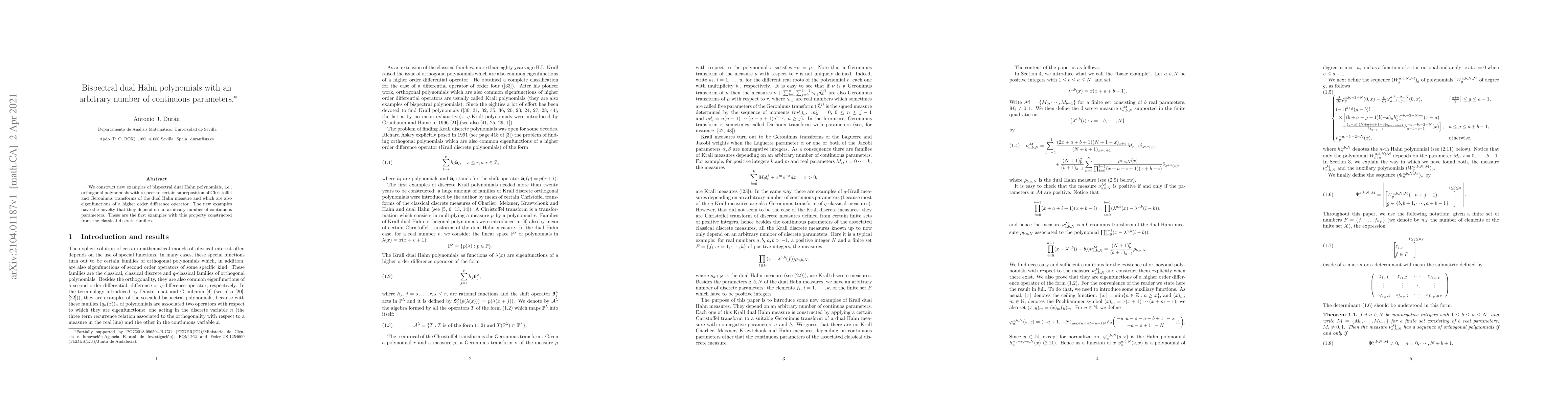 This paper introduces bispectral dual Hahn polynomials with an arbitrary number of continuous parameters, which are orthogonal under a superposition of Christoffel and Geronimus transforms and eigenfunctions of a higher-order difference operator. This marks the first time such examples have been constructed from classical discrete families.