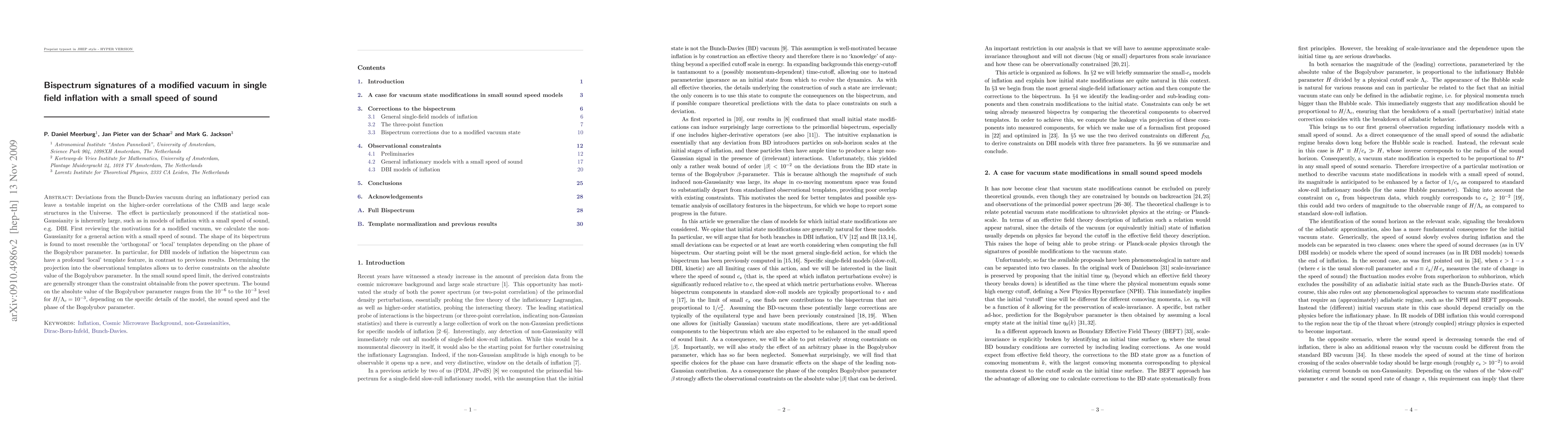 Deviations from the Bunch-Davies vacuum during an inflationary period can leave a testable imprint on the higher-order correlations of the CMB and large scale structures in the Universe. The effect is particularly pronounced if the statistical non-Gaussianity is inherently large, such as in models of inflation with a small speed of sound, e.g. DBI. First reviewing the motivations for a modified vacuum, we calculate the non-Gaussianity for a general action with a small speed of sound. The shape of its bispectrum is found to most resemble the 'orthogonal' or 'local' templates depending on the phase of the Bogolyubov parameter. In particular, for DBI models of inflation the bispectrum can have a profound 'local' template feature, in contrast to previous results. Determining the projection into the observational templates allows us to derive constraints on the absolute value of the Bogolyubov parameter. In the small sound speed limit, the derived constraints are generally stronger than the existing constraint derived from the power spectrum. The bound on the absolute value of the Bogolyubov parameter ranges from the 10^-6 to the 10^-3 level for H/\Lambda_c = 10^-3, depending on the specific details of the model, the sound speed and the phase of the Bogolyubov parameter.