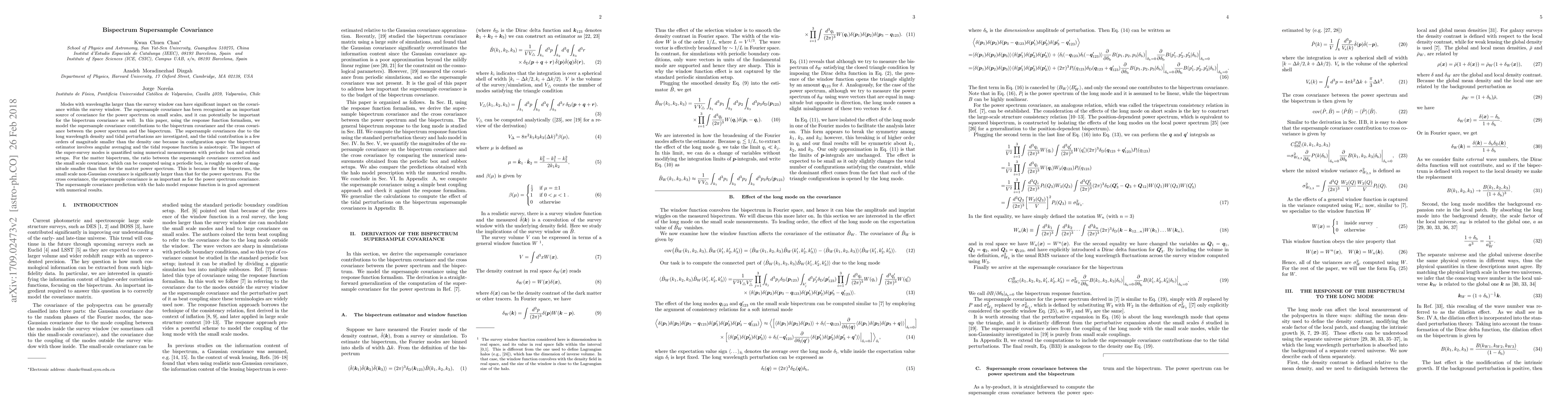 The research uses the response function formalism to model supersample covariance contributions to the bispectrum covariance and the cross covariance between the power spectrum and the bispectrum, investigating density and tidal perturbations.