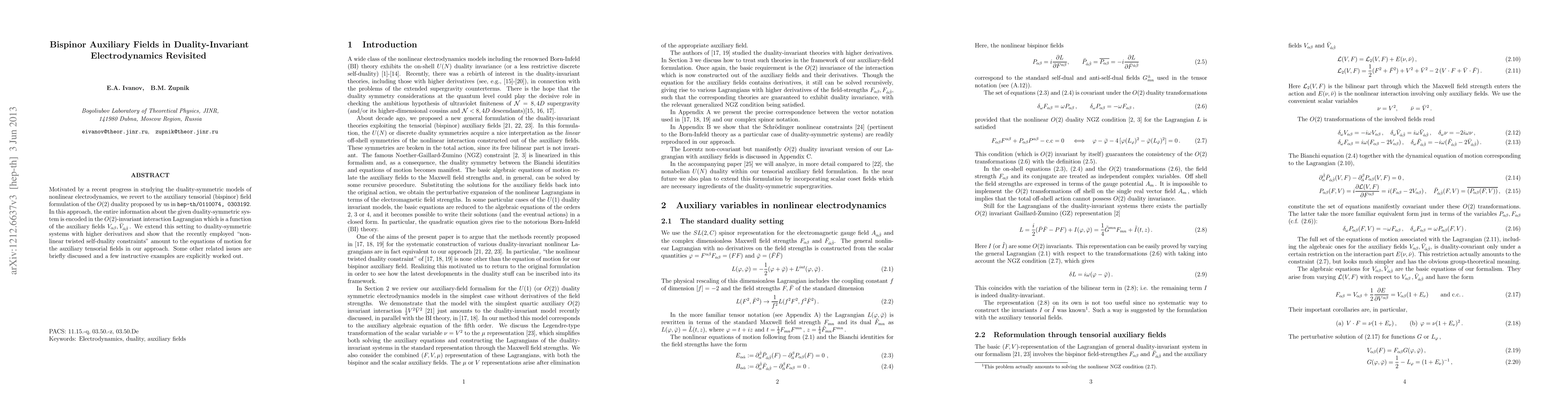 This paper revisits the bispinor auxiliary field formulation in duality-invariant electrodynamics, extending the O(2) duality approach to systems with higher derivatives. The focus is on how the nonlinear twisted self-duality constraints correspond to the equations of motion for these auxiliary fields.