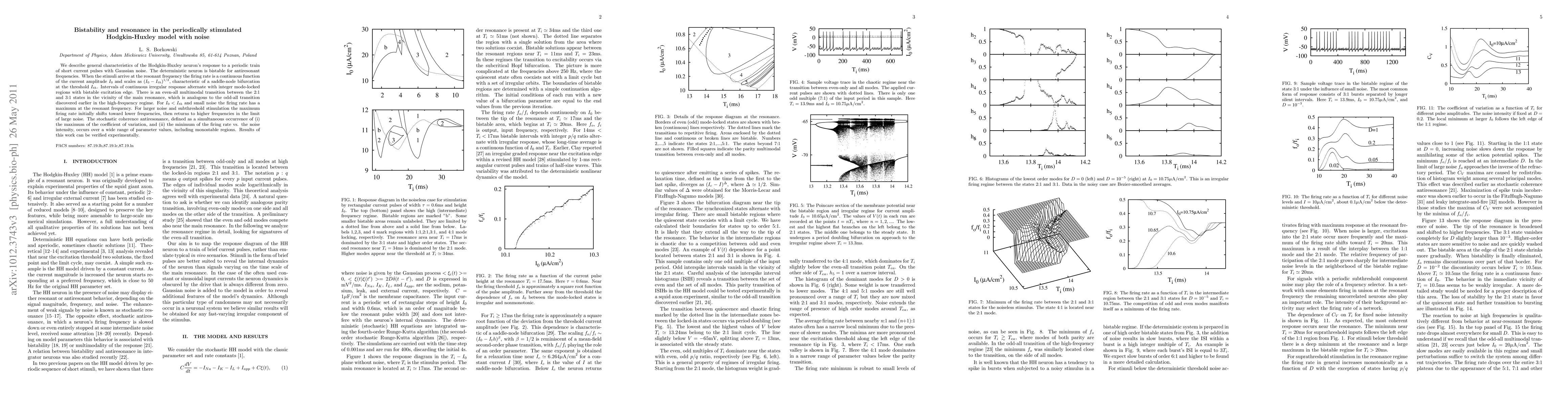 to a periodic train of short current pulses with Gaussian noise. The