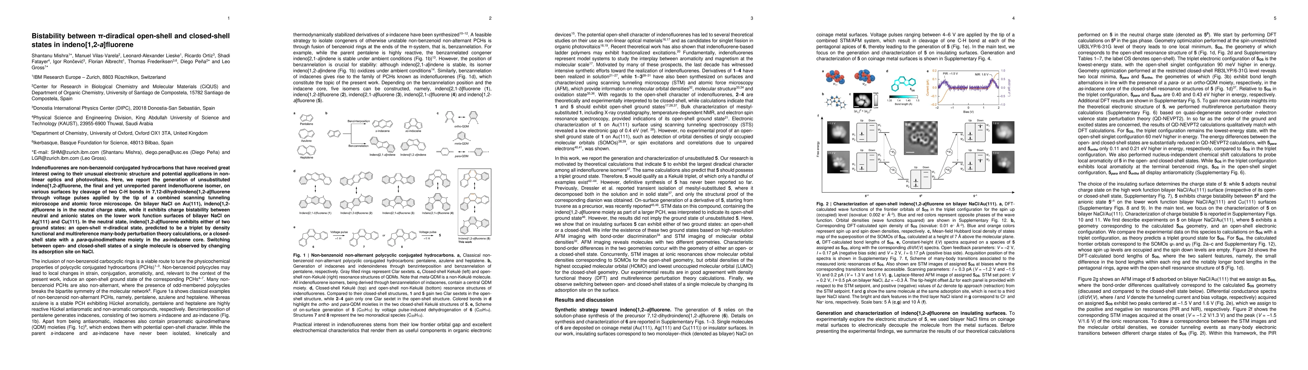 This paper reports the generation of unsubstituted indeno[1,2-a]fluorene via surface cleavage and demonstrates its charge bistability on different metal surfaces. The molecule exhibits switching between open-shell pi-diradical and closed-shell states depending on its adsorption site.