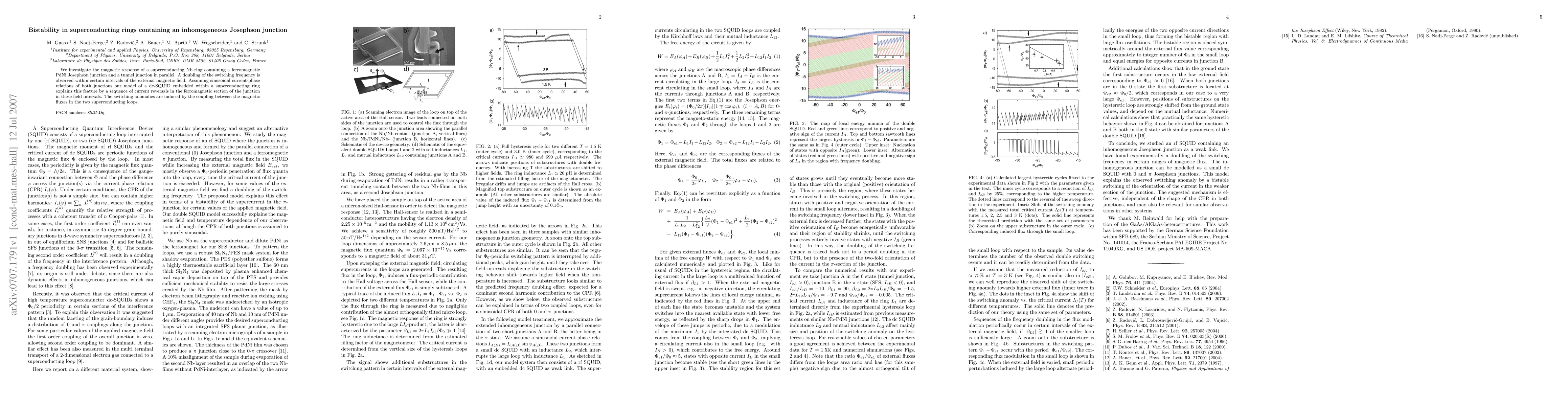We investigate the magnetic response of a superconducting Nb ring containing a ferromagnetic PdNi Josephson junction and a tunnel junction in parallel. A doubling of the switching frequency is observed within certain intervals of the external magnetic field. Assuming sinusoidal current-phase relations of both junctions our model of a dc-SQUID embedded within a superconducting ring explains this feature by a sequence of current reversals in the ferromagnetic section of the junction in these field intervals. The switching anomalies are induced by the coupling between the magnetic fluxes in the two superconducting loops.