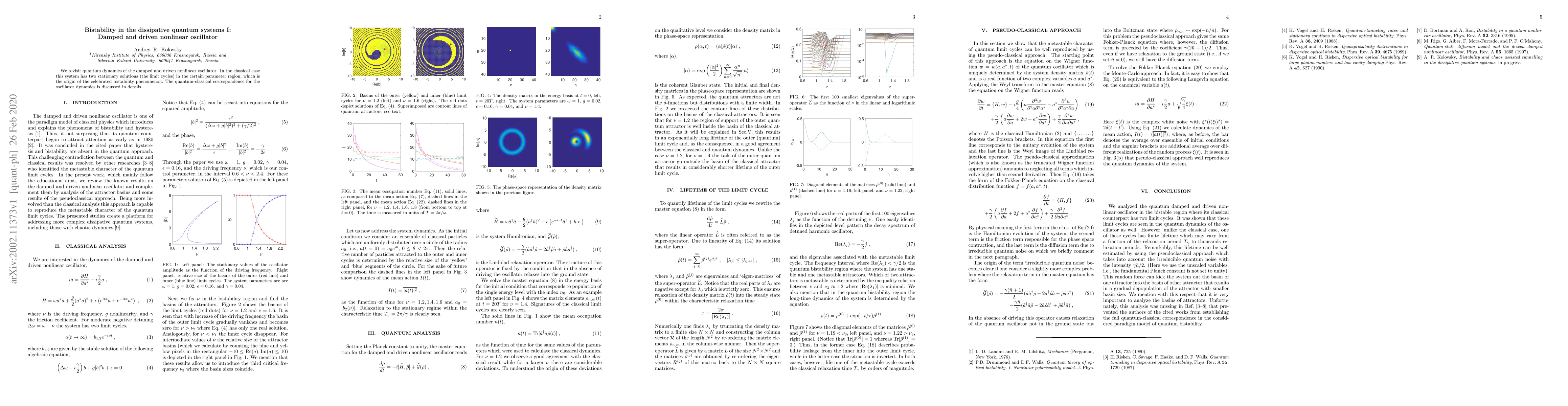 We revisit quantum dynamics of the damped and driven nonlinear oscillator. In the classical case this system has two stationary solutions (the limit cycles) in the certain parameter region, which is the origin of the celebrated bistability phenomenon. The quantum-classical correspondence for the oscillator dynamics is discussed in details.