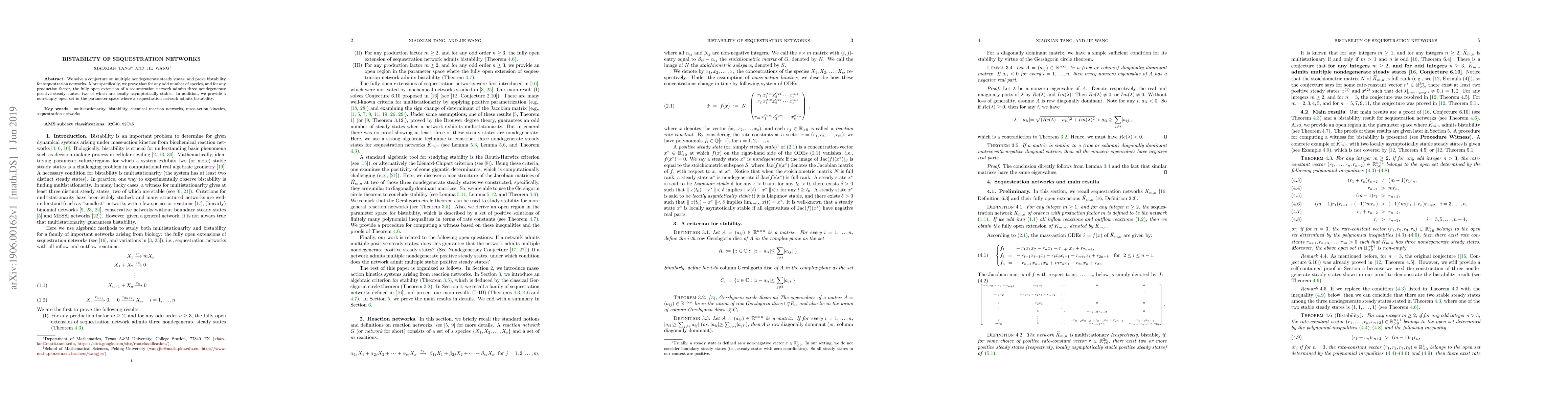A recent study proves that sequestration networks can exhibit bistability for odd numbers of species and production factors, admitting three nondegenerate steady states with two being locally asymptotically stable.
