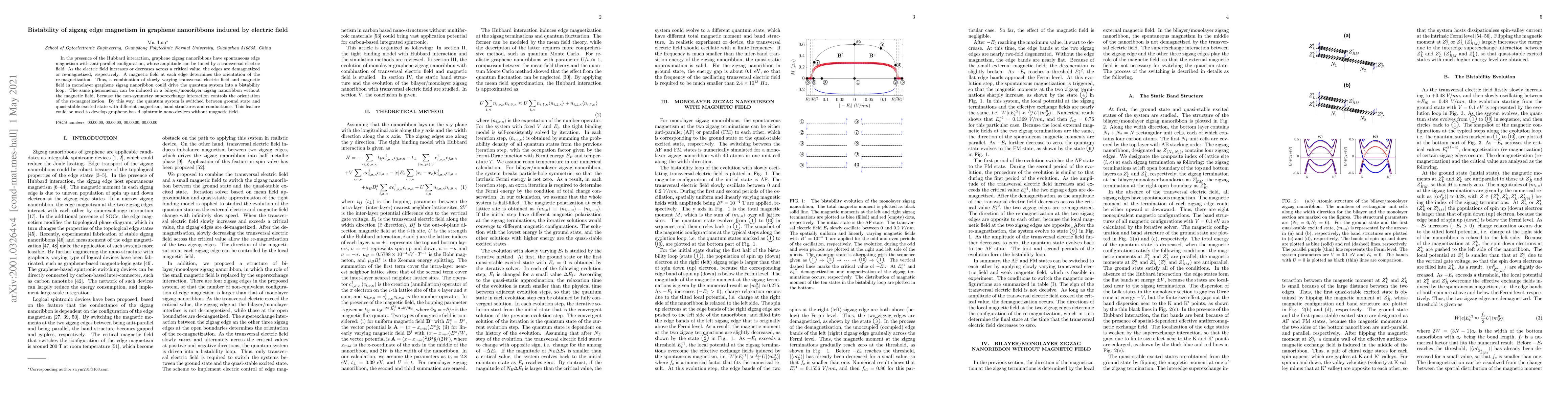 In the presence of the Hubbard interaction, graphene zigzag nanoribbons have spontaneous edge magnetism with anti-parallel configuration, whose amplitude can be tuned by a transversal electric field. As the electric field increases or decreases across a critical value, the edges are demagnetized or re-magnetized, respectively. A magnetic field at each edge determines the orientation of the re-magnetization. Thus, a combination of slowly varying transversal electric field and magnetic field in monolayer graphene zigzag nanoribbon could drive the quantum system into a bistability loop. The same phenomenon can be induced in a bilayer/monolayer zigzag nanoribbon without the magnetic field, because the non-symmetry superexchange interaction controls the orientation of the re-magnetization. By this way, the quantum system is switched between ground state and quasi-stable excited state with different magnetism, band structures and conductance. This feature could be used to develop graphene-based spintronic nano-devices without magnetic field.