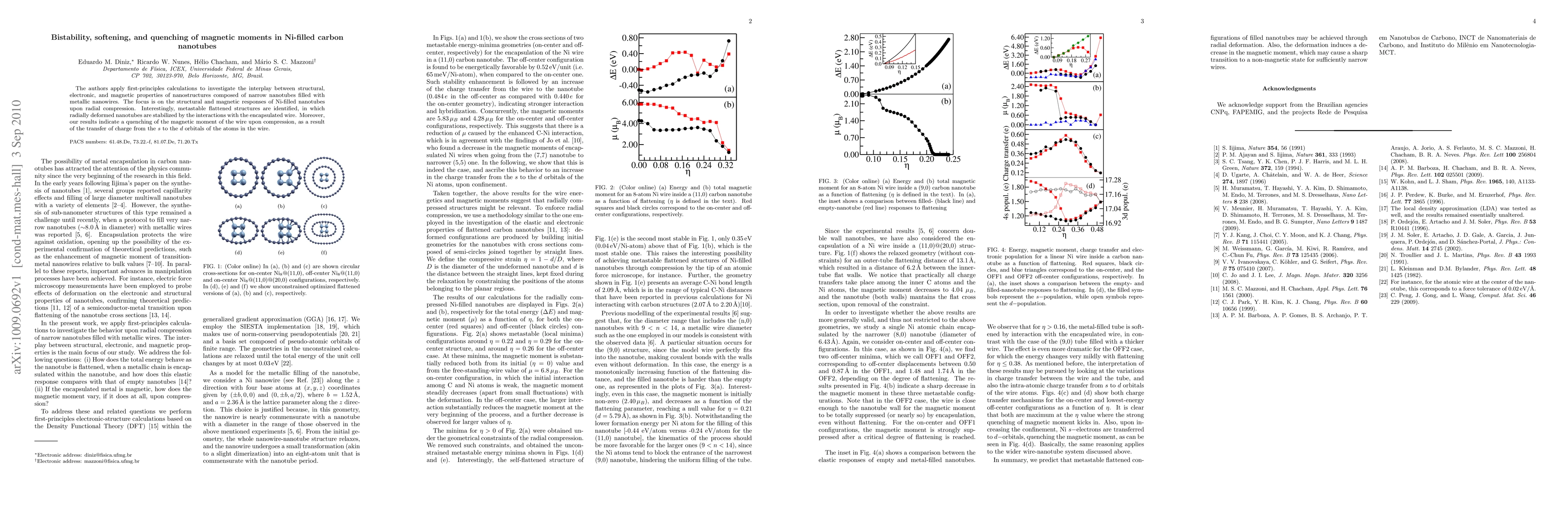 Researchers used first-principles calculations to study magnetic nanotubes filled with nickel, finding metastable flattened structures that stabilize the wire under compression. Compression also causes a quenching of the nickel's magnetic moment due to charge transfer between orbitals.