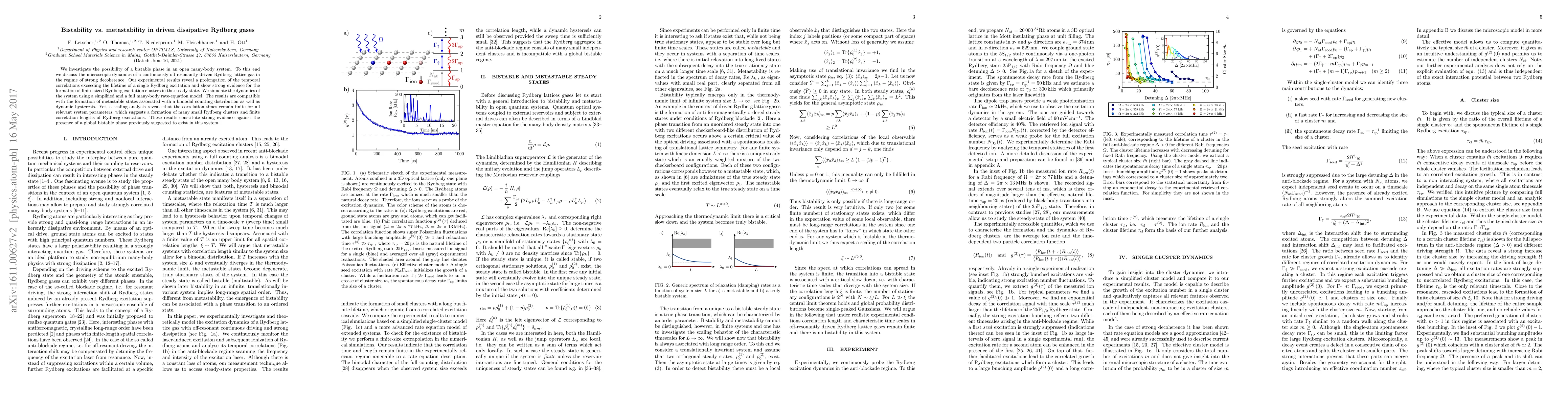 This paper explores the dynamics of a driven Rydberg gas, finding evidence for metastable states and bimodal distributions but concluding that the system lacks a global bistable phase due to finite correlation lengths. Experimental results and simulations indicate the formation of small clusters rather than a large-scale bistable state.