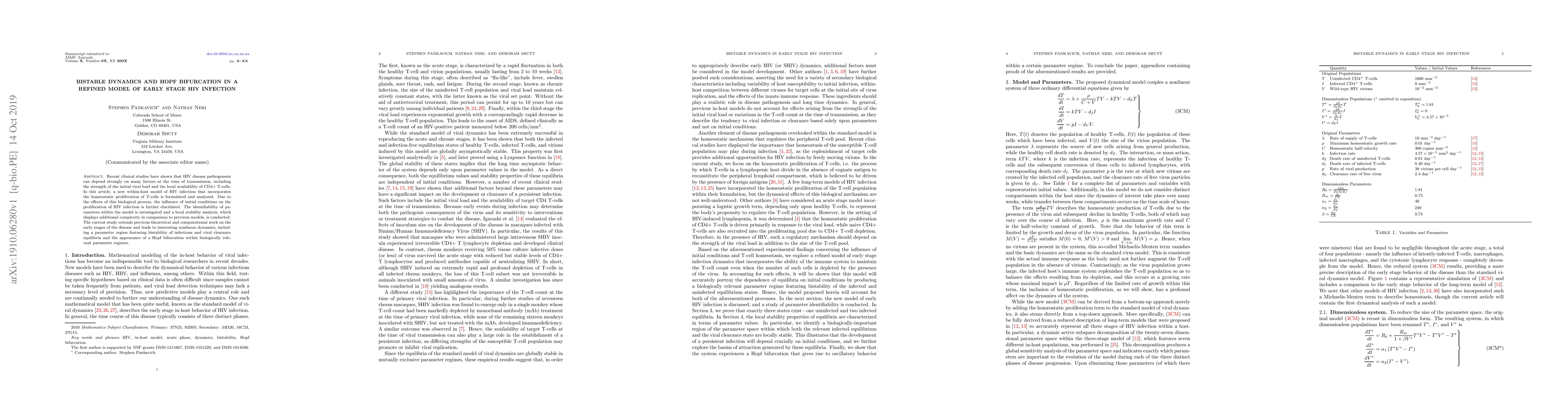 This paper formulates a refined within-host model of early HIV infection, incorporating T-cell proliferation, and explores its dynamics. It identifies bistability and Hopf bifurcation, revealing complex interactions influenced by initial conditions and parameter values.