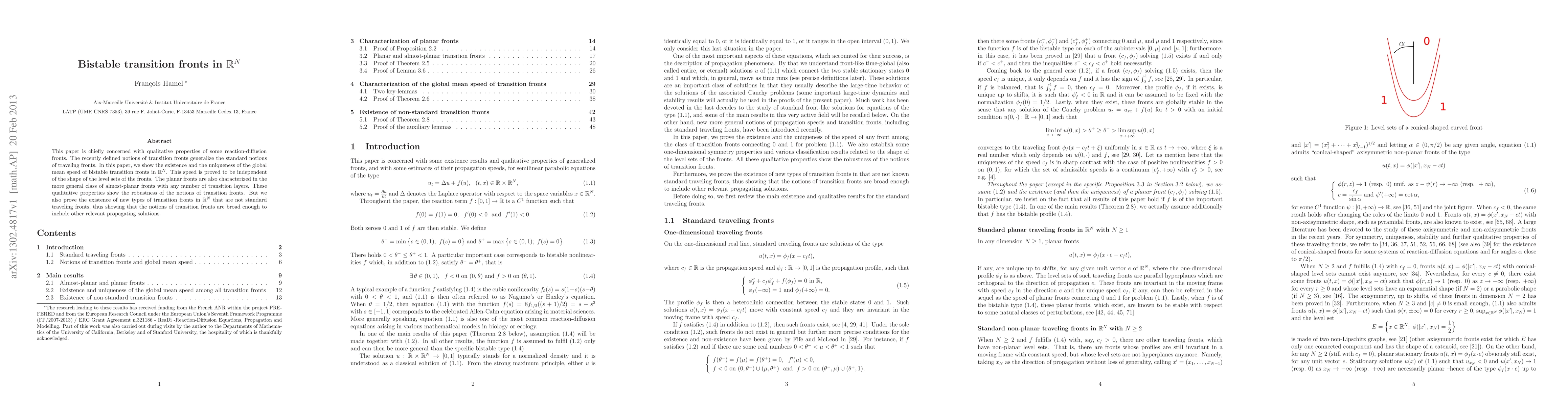 The paper introduces and rigorously analyzes the concept of transition fronts, generalizing the notion of traveling fronts, and proves crucial properties such as the existence and uniqueness of global mean speed.