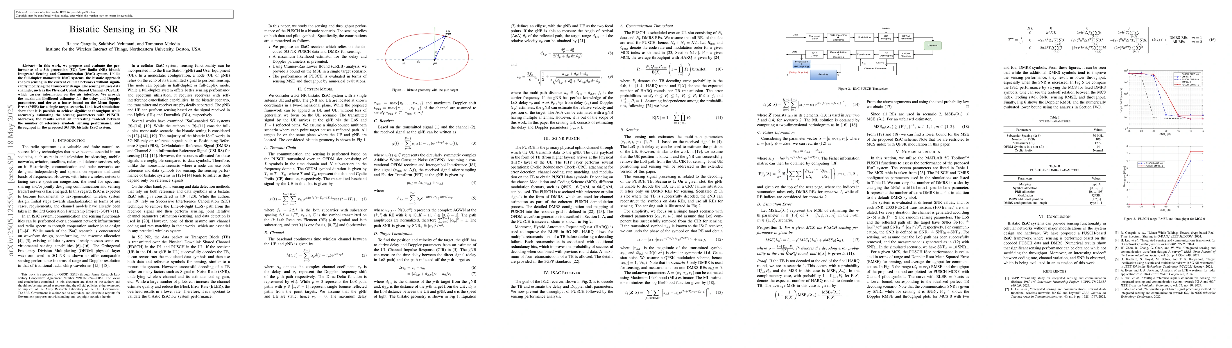 The paper introduces a 5G NR bistatic ISaC system design, along with a MSE lower bound for sensing parameter estimation.