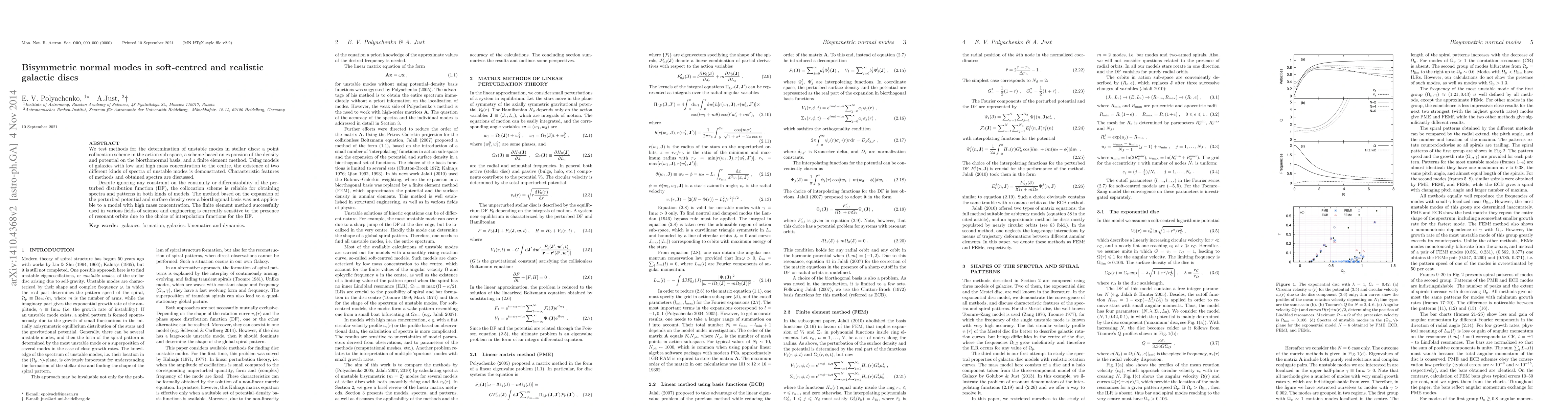 We test methods for the determination of unstable modes in stellar discs: a point collocation scheme in the action sub-space, a scheme based on expansion of the density and potential on the biorthonormal basis, and a finite element method. Using models of galaxies with low and high mass concentration to the center, the existence of two different kinds of spectra of unstable modes is demonstrated. Characteristic features of methods and obtained spectra are discussed. Despite ignoring any constraint on the continuity or differentiability of the perturbed DF, the collocation scheme is reliable for obtaining spectra and patterns in both kinds of models. The method based on the expansion of the perturbed potential and surface density over a biorthogonal basis was not applicable to a model with high mass concentration. The finite element method successfully used in various fields of science and engineering is currently sensitive to the presence of resonant orbits due to the choice of interpolation functions for the distribution function.