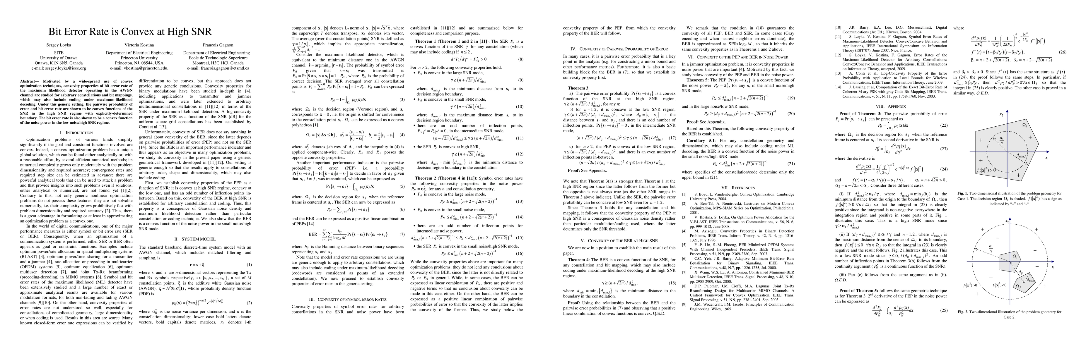 Motivated by a wide-spread use of convex optimization techniques, convexity properties of bit error rate of the maximum likelihood detector operating in the AWGN channel are studied for arbitrary constellations and bit mappings, which may also include coding under maximum-likelihood decoding. Under this generic setting, the pairwise probability of error and bit error rate are shown to be convex functions of the SNR in the high SNR regime with explicitly-determined boundary. The bit error rate is also shown to be a convex function of the noise power in the low noise/high SNR regime.