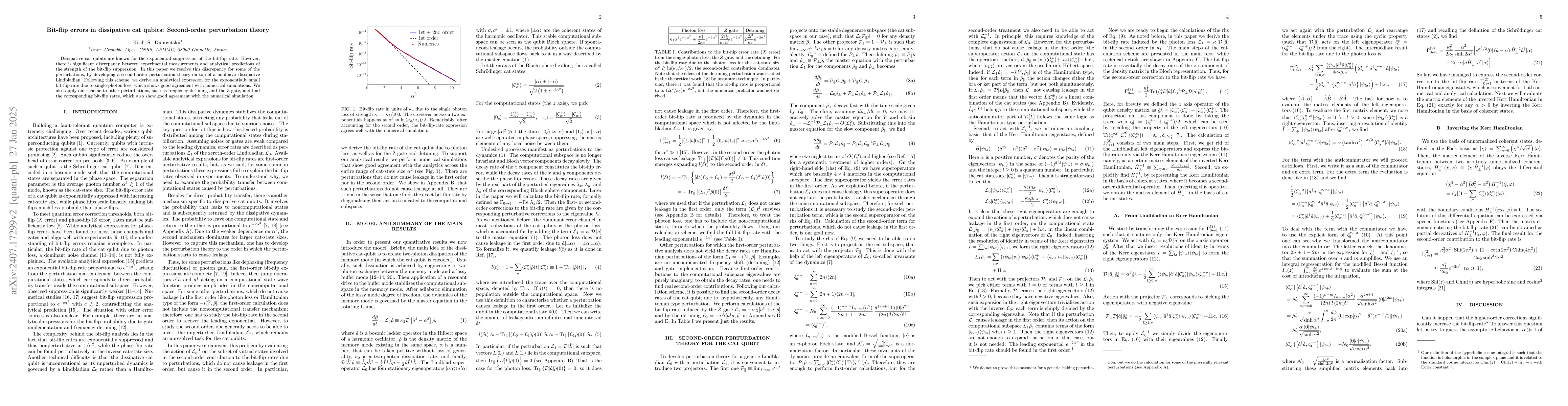 This paper develops a second-order perturbation theory to resolve discrepancies in the predicted versus measured bit-flip rates in dissipative cat qubits, deriving analytical expressions that align well with numerical simulations for single-photon loss, frequency detuning, and Z gate perturbations.