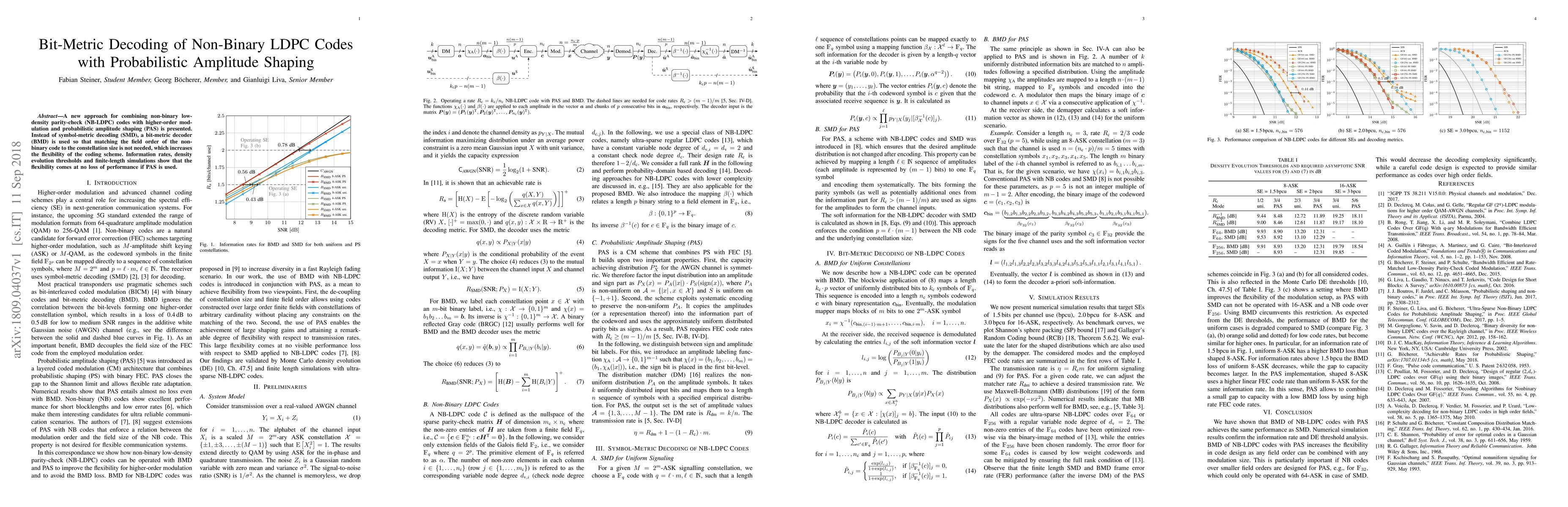 The research presents a novel approach combining non-binary LDPC codes with higher-order modulation and probabilistic amplitude shaping (PAS), using bit-metric decoding (BMD) instead of symbol-metric decoding (SMD).