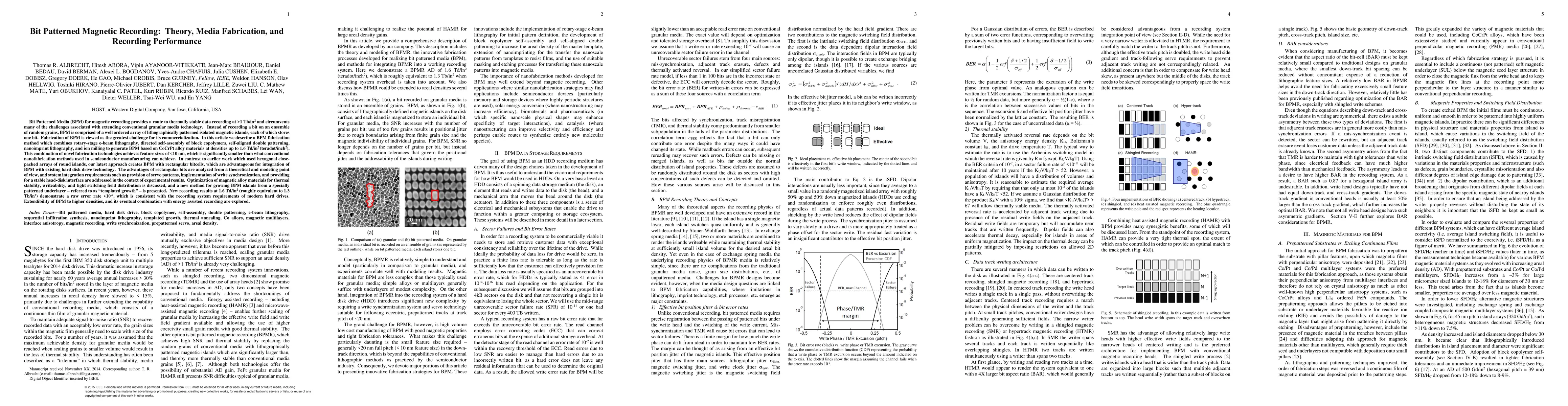 This paper outlines a BPM fabrication method using advanced techniques like e-beam lithography and nanoimprint lithography to create magnetic islands at sub-10 nm sizes, achieving densities over 1 Tb/in². The study also evaluates rectangular bitcell designs for better integration with existing disk technology, alongside theoretical and practical aspects of system integration and material optimization for high-density magnetic recording.