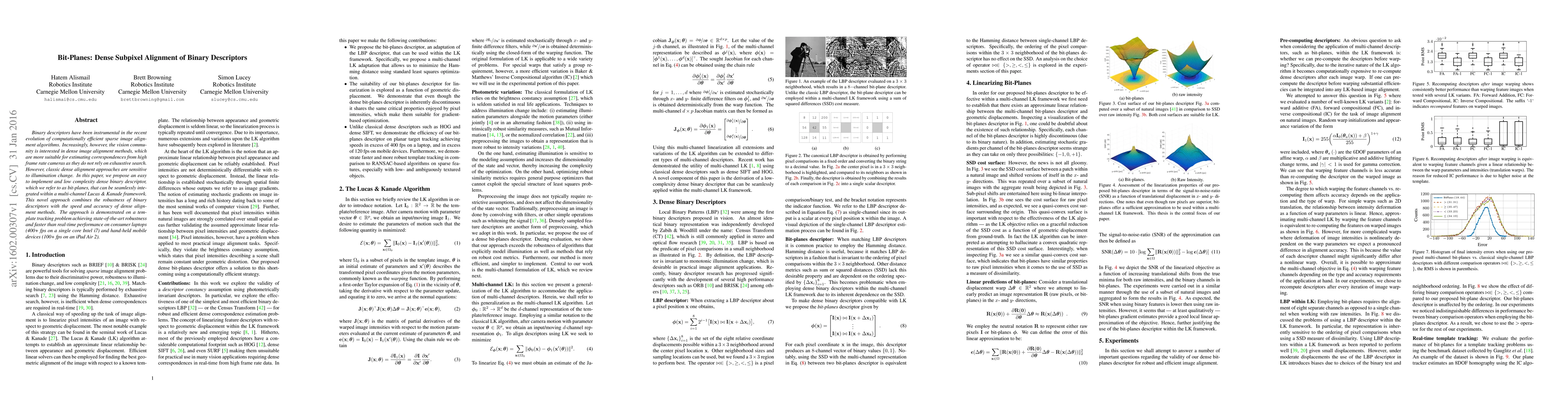 This paper introduces 'bit-planes', a new dense binary descriptor for efficient image alignment, combining robustness of binary descriptors with accuracy and speed of dense methods. It achieves state-of-the-art performance in template tracking on laptops (>400 fps) and mobile devices (>100 fps), demonstrating robustness against illumination changes.