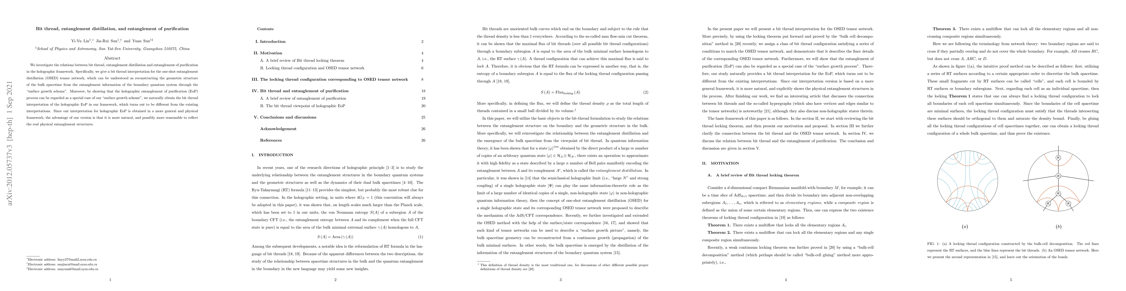This paper explores the connections between bit thread, entanglement distillation, and entanglement of purification within the holographic framework. It provides a novel bit thread interpretation for one-shot entanglement distillation and shows that holographic entanglement of purification can be viewed as a special case of a "surface growth scheme," offering a more natural and potentially more accurate reflection of physical entanglement structures.