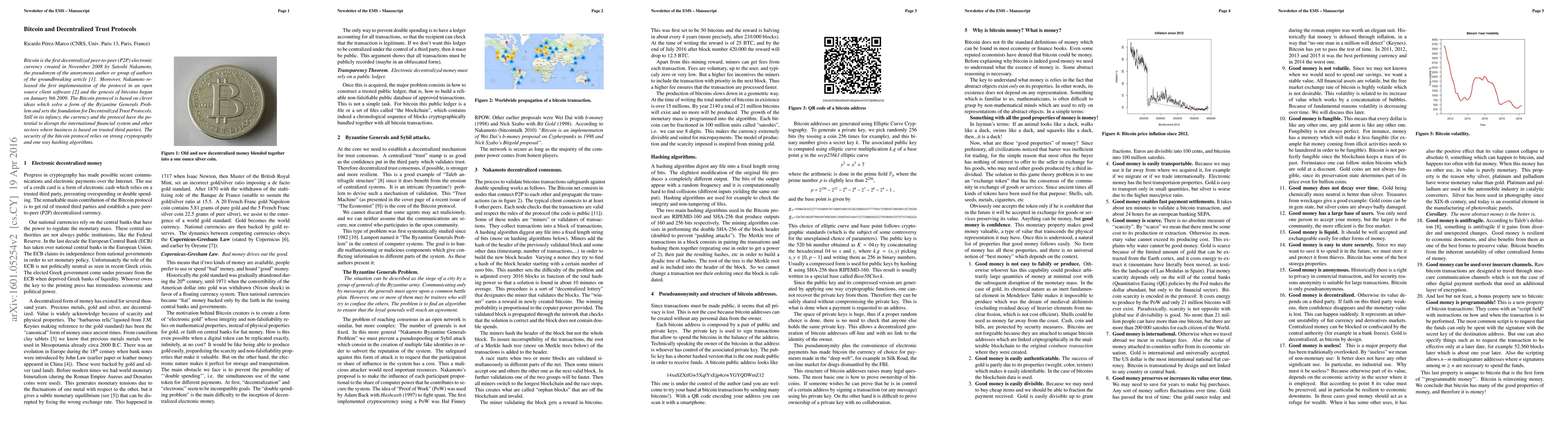**Summary:** Bitcoin, created by Satoshi Nakamoto in 2008, is the pioneering decentralized P2P electronic currency based on cryptography to solve the Byzantine Generals Problem, laying the groundwork for future decentralized trust protocols with potential to transform global financial systems. Its security hinges on robust cryptographic and hashing techniques.