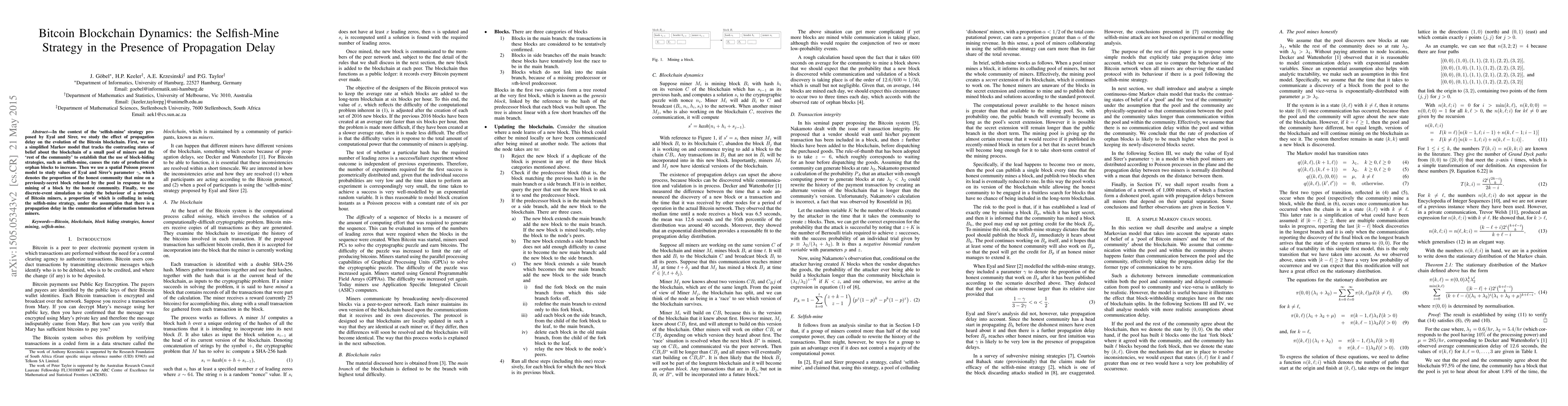 This paper examines the impact of propagation delay on the selfish-mine strategy within Bitcoin's blockchain, showing that block-hiding strategies increase orphan block production. It uses simulation to analyze the behavior of a network of miners, with some employing the selfish-mine strategy, under communication delays.