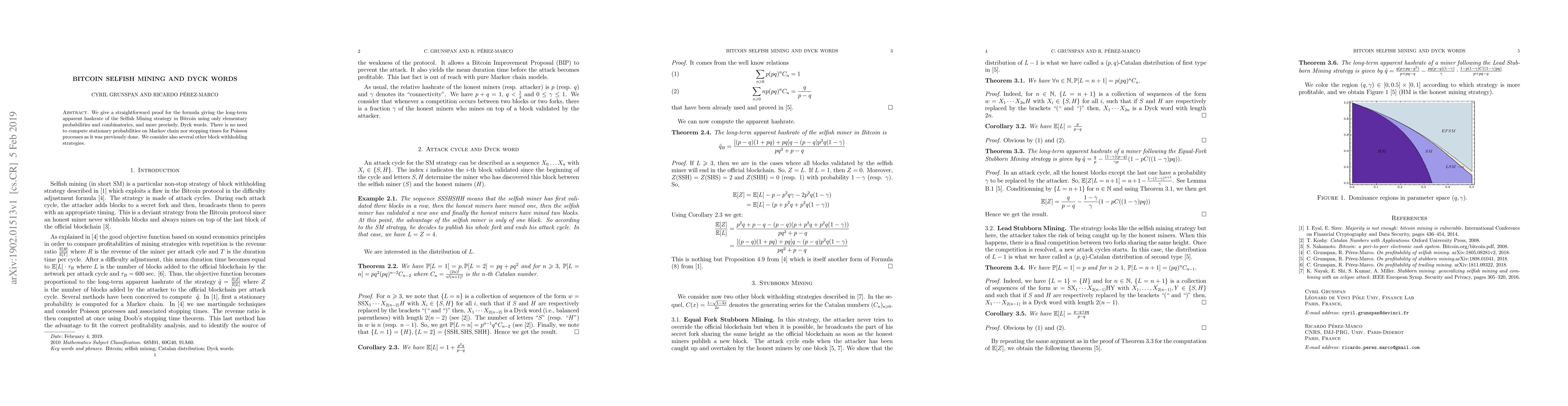 This work uses Dyck words to analyze selfish mining strategies, providing a novel approach to understanding this type of attack.
