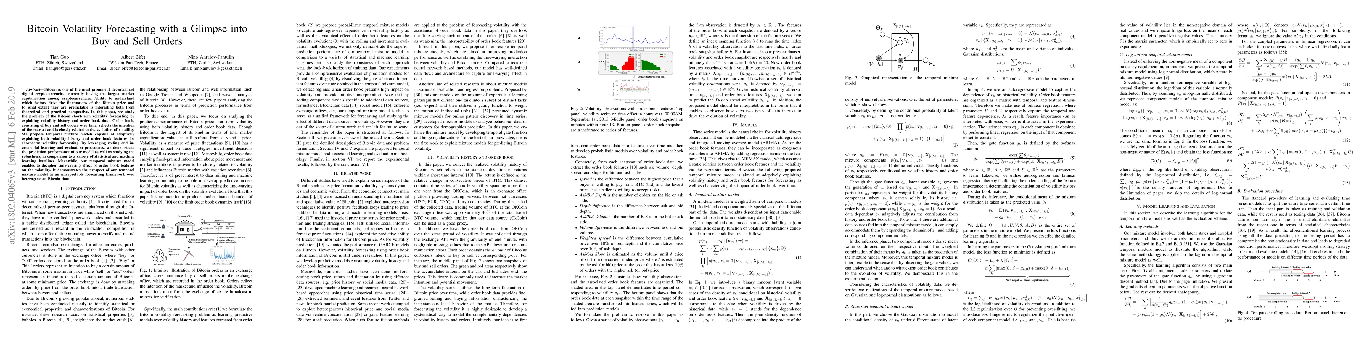 This paper investigates short-term Bitcoin price volatility predictions using realized volatility data and order information from a major trading platform. Various statistical and machine learning methods are tested to determine their effectiveness in forecasting price fluctuations.