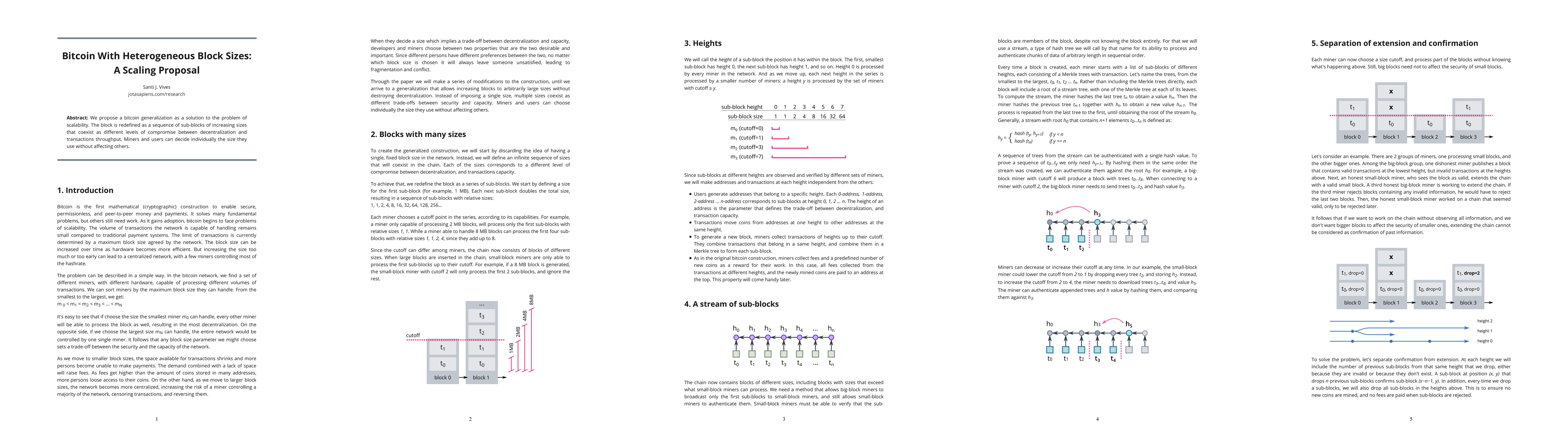We propose a bitcoin generalization as a solution to the problem of scalability. The block is redefined as a sequence of sub-blocks of increasing sizes that coexist as different levels of compromise between decentralization and transactions throughput. Miners and users can decide individually the sizes they use without affecting others in the network.