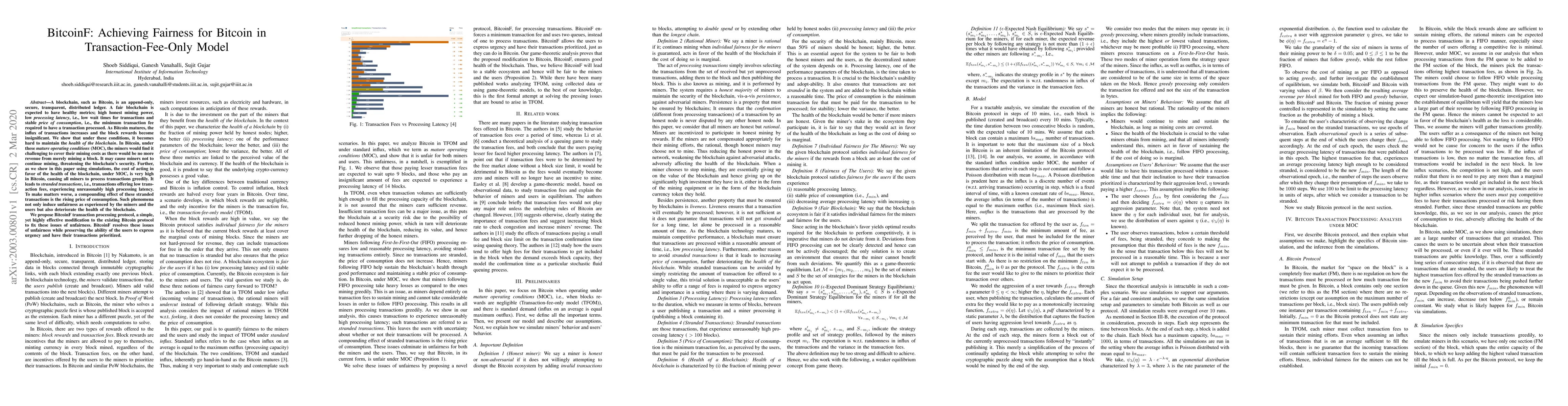 Introduced Bitcoin F, a modified version of Bitcoin that incorporates minimum transaction fees to ensure marginal mining costs are covered under MOC.